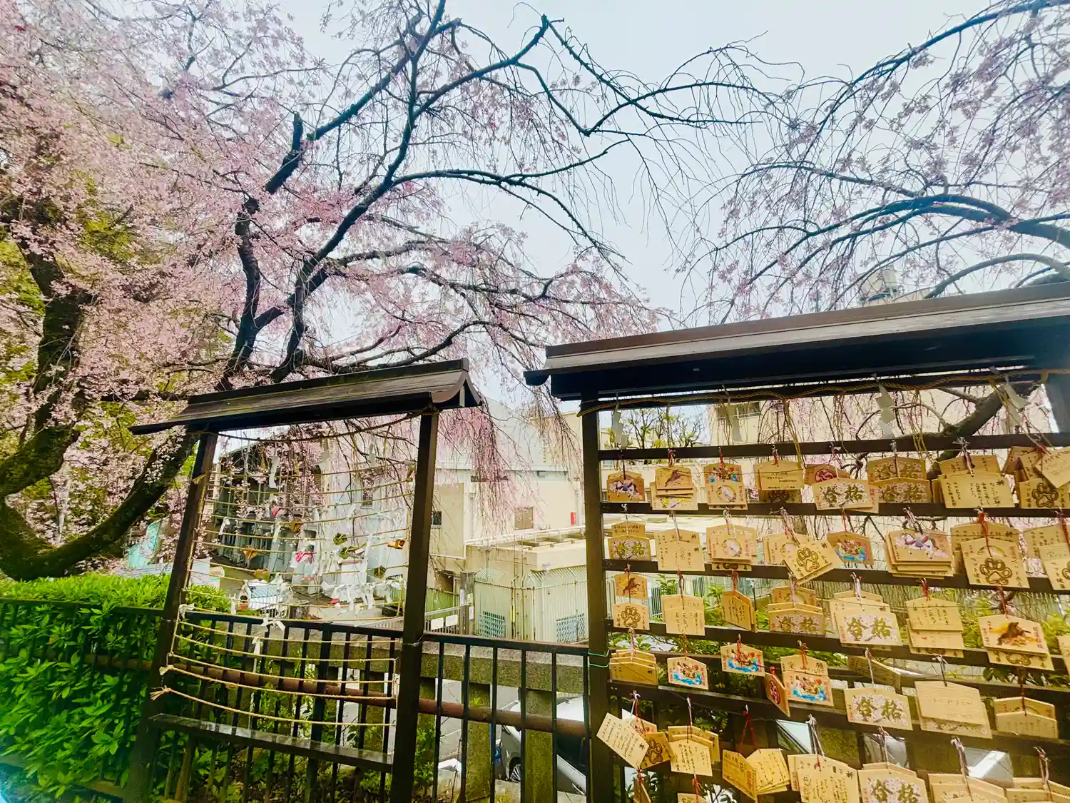 境内のしだれ桜は、今が最盛期を迎えました。