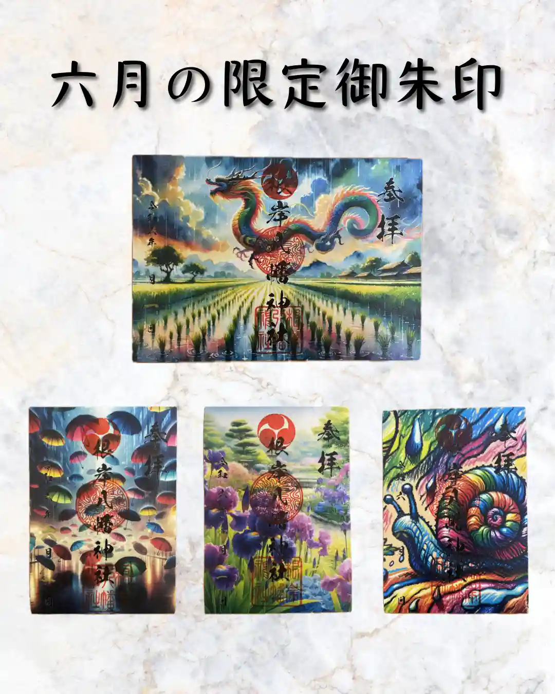 AIで作ったような御朱印が気に入って二回目の参拝です。今回は奮発して五種類拝受しました。全て書き置…