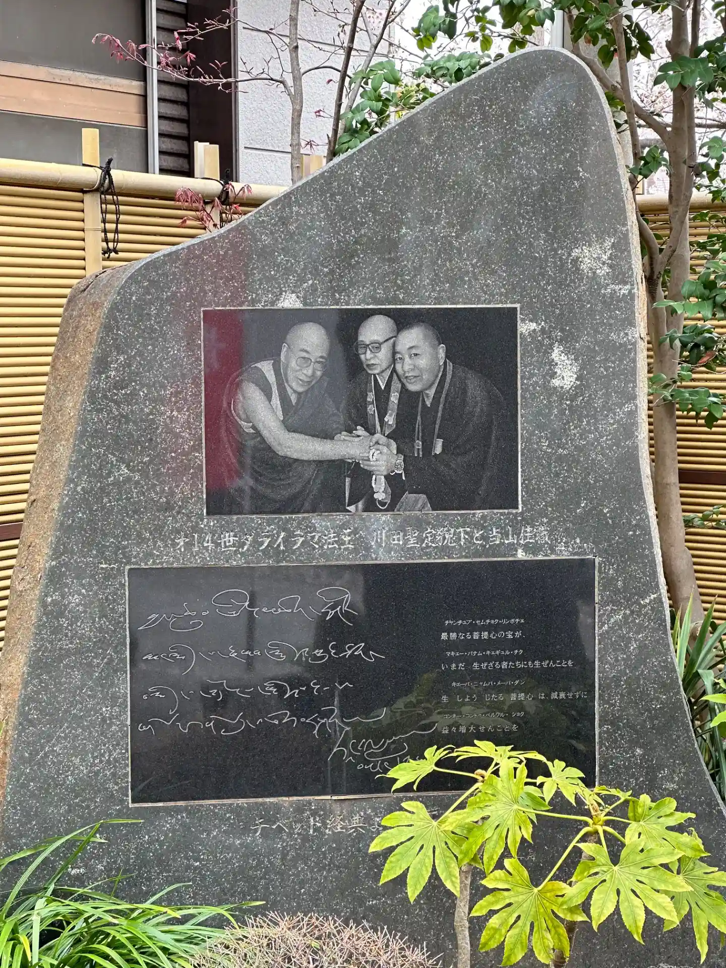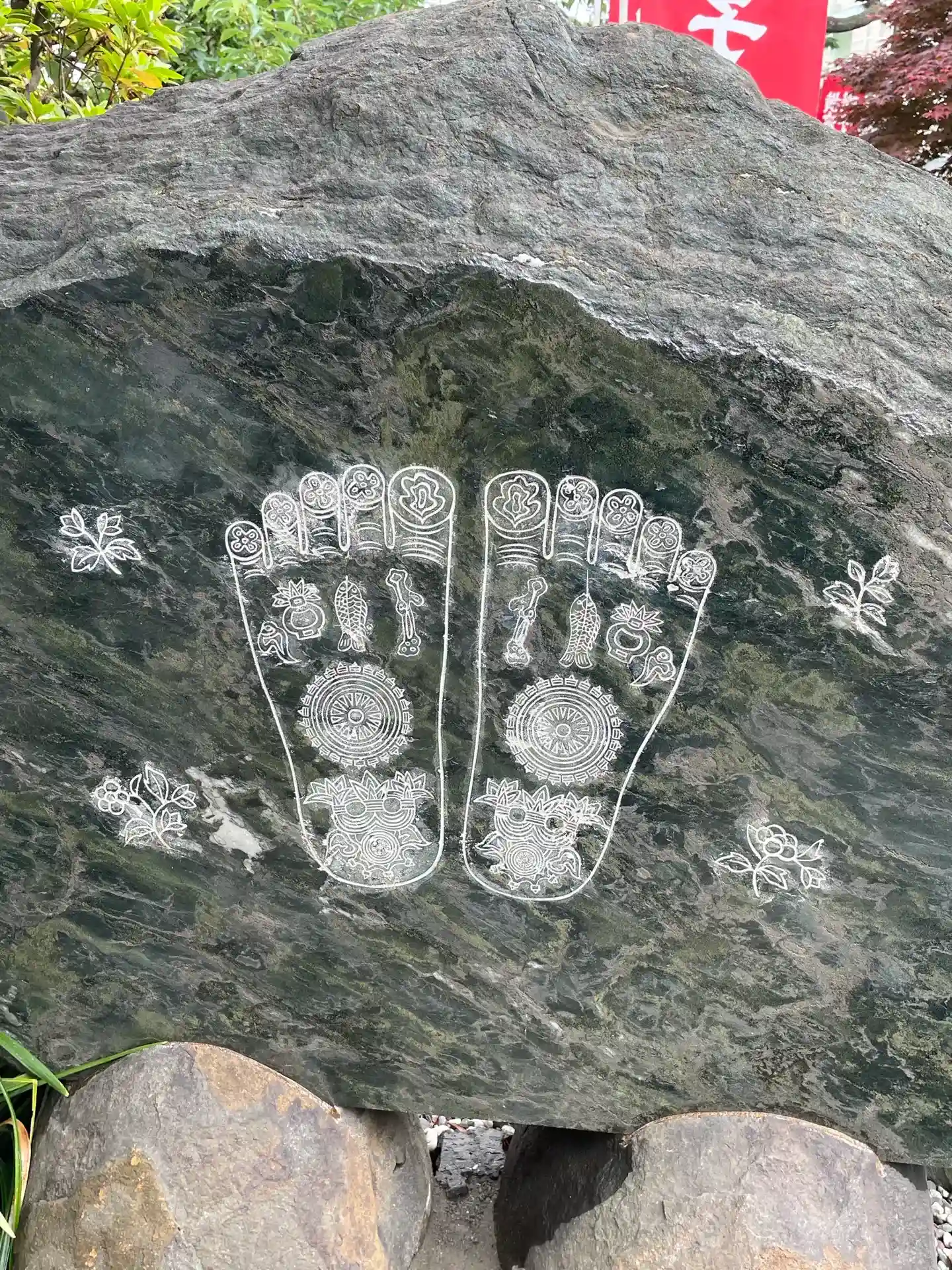 ブータン国王が訪れた時のレリーフ。仏足石になっています。