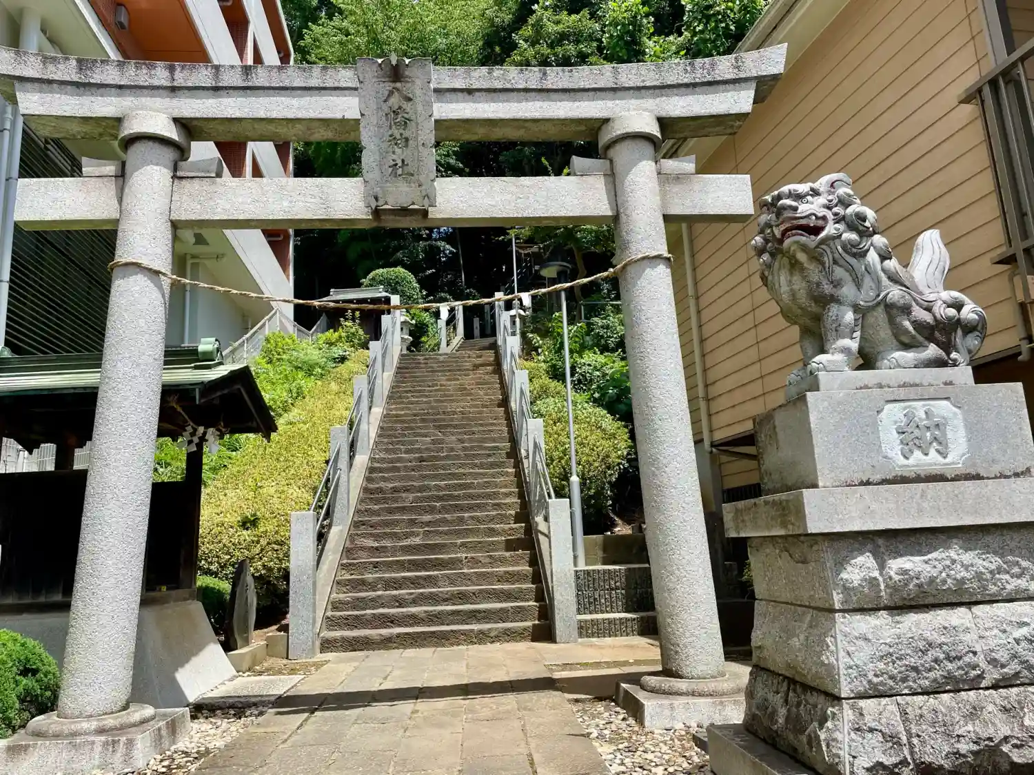 神奈川県川崎市宮前区宮前平に鎮座する神社で、旧大山街道沿いにあり、急な石段の参道を登った先に社殿が…