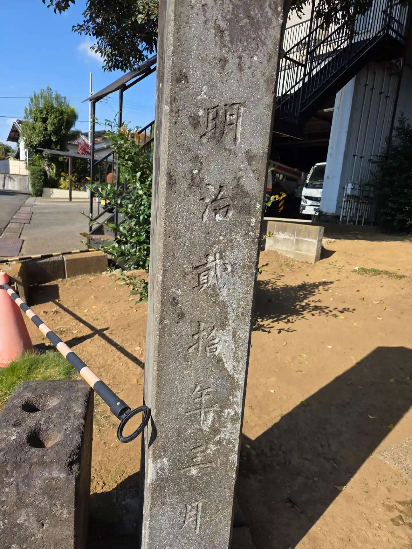 神社の入口には基準点があります。(戸塚の八坂神社にもあります。)