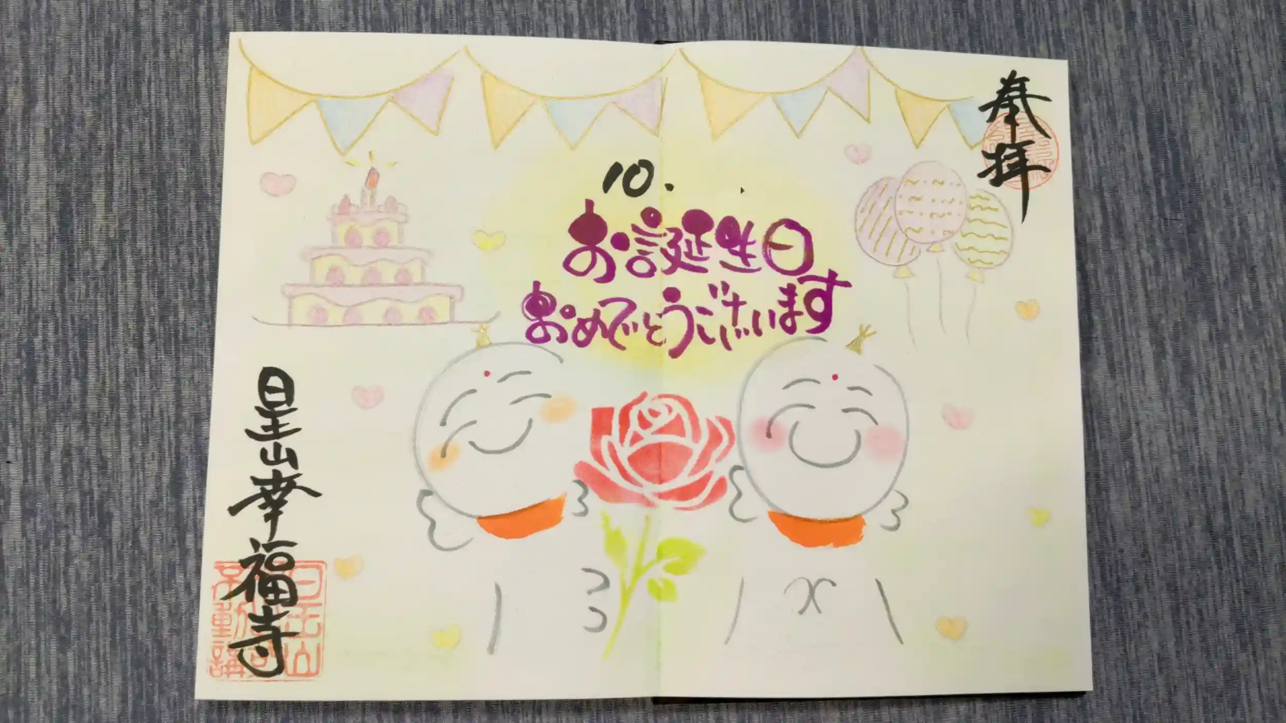 お預け、郵送返送になりますが、かわいらしいお地蔵様のイラストの入った御朱印がいただけます。