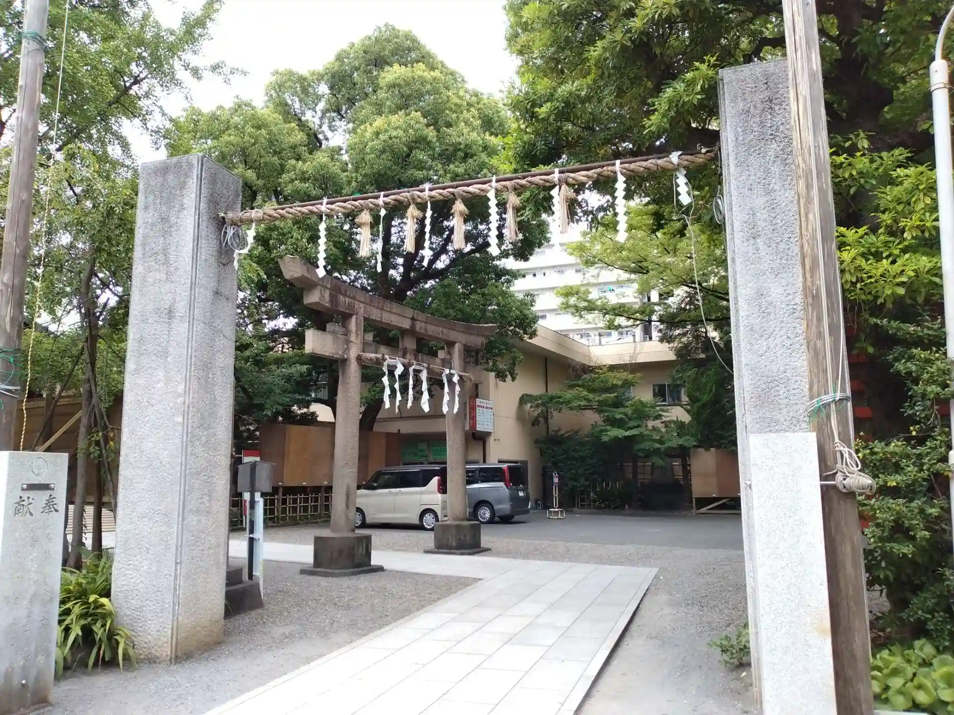 第一京浜国道(箱根駅伝を通るルート)沿いに緑豊かな神社です。