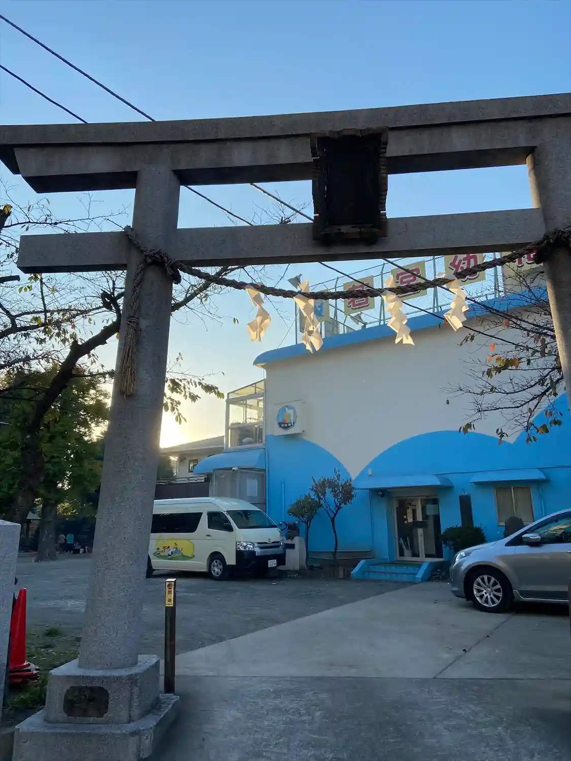 鳥居があったとおもったら、そちらは幼稚園の前、もう少し先にも鳥居があり、…