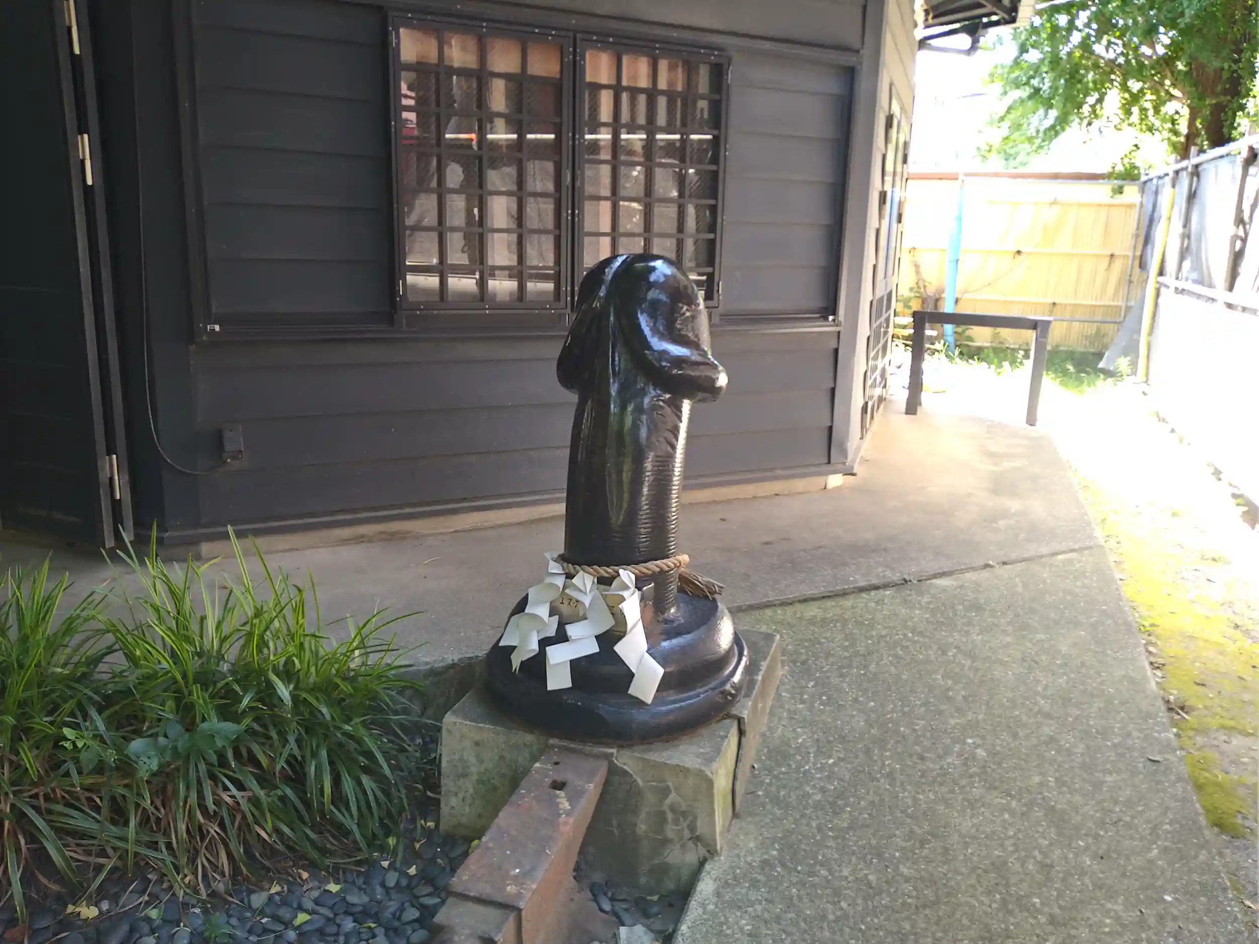 こちらは「性と鍛冶屋の神」とのことで境内には大きいのと小さいち◯こが……。