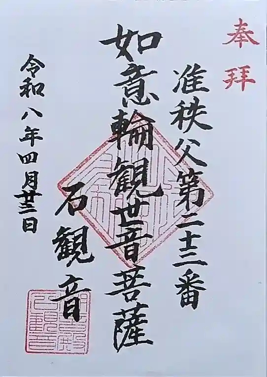 石観音は二十三番札所で如意輪観世音菩薩様が安置されていました。