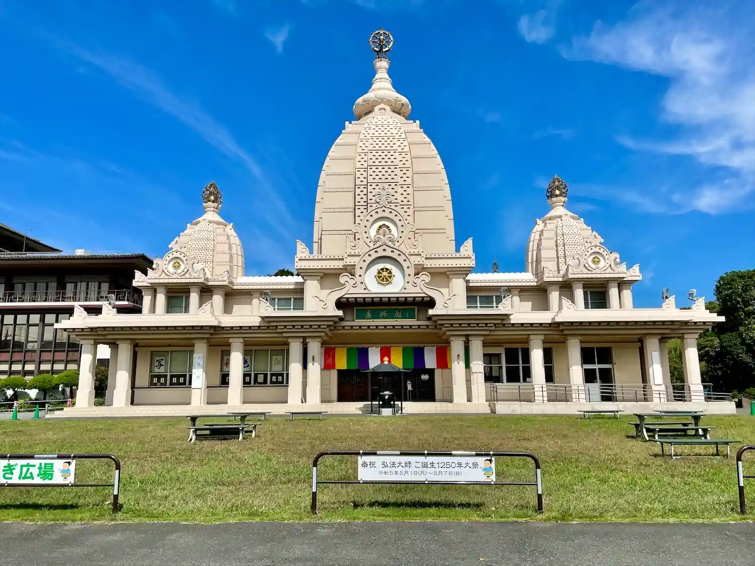 川崎大師(平間寺)の開創八百八十年の記念事業として平成20年(2008)11月1日に開設。当初は自動車交通安全祈祷殿として建立された。