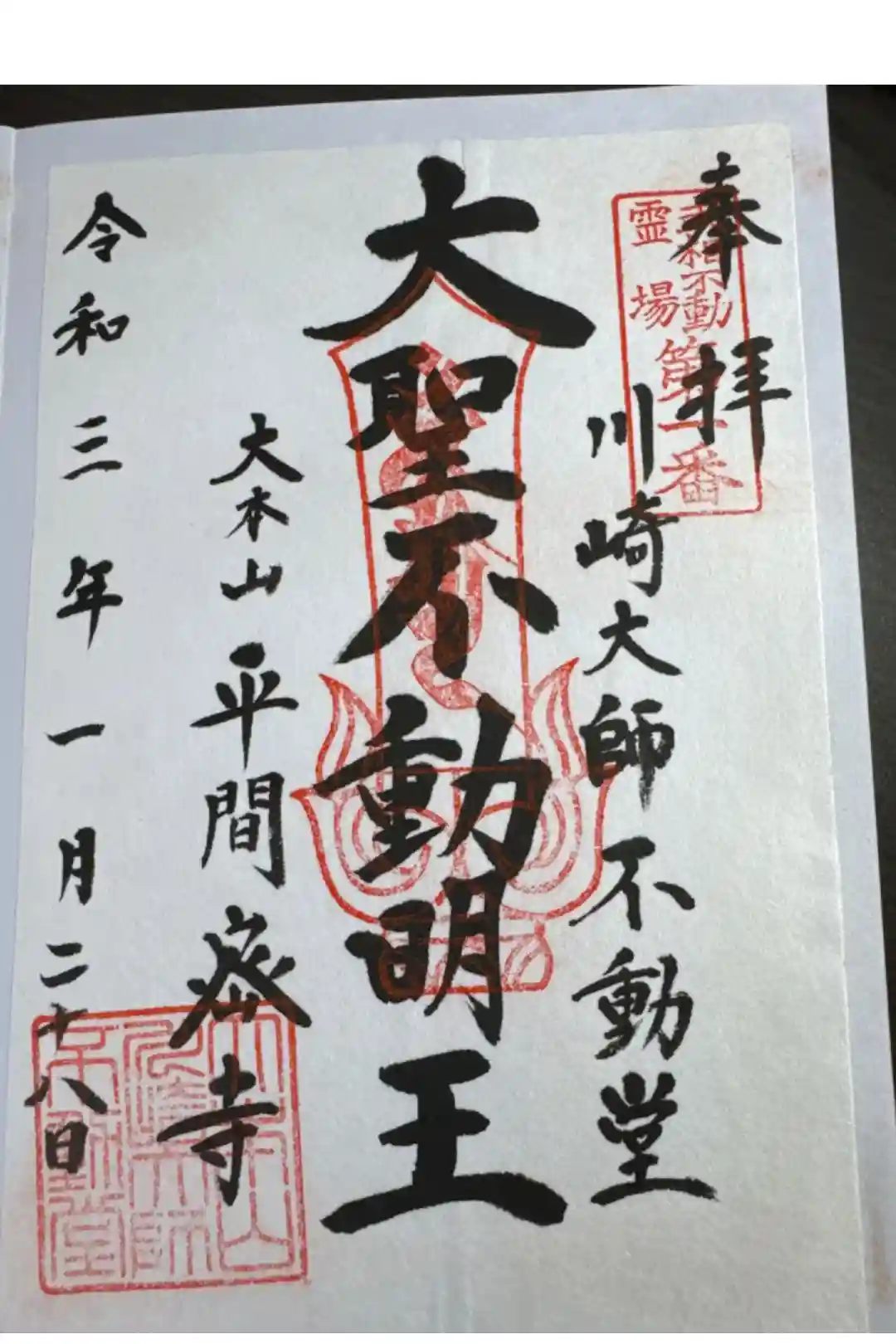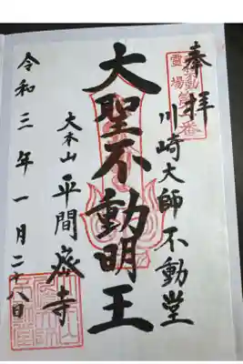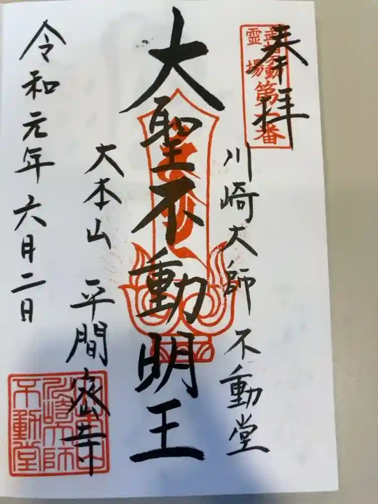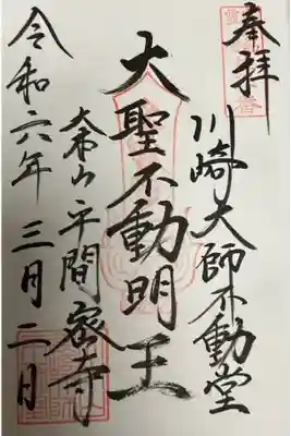 川崎大師不動堂の御朱印 写真一覧
