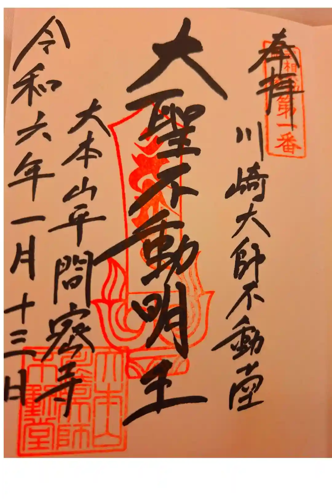 書入れ 川崎大師不動堂にて拝受 300円