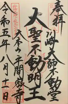 川崎大師 不動堂 御朱印 お書き入れ