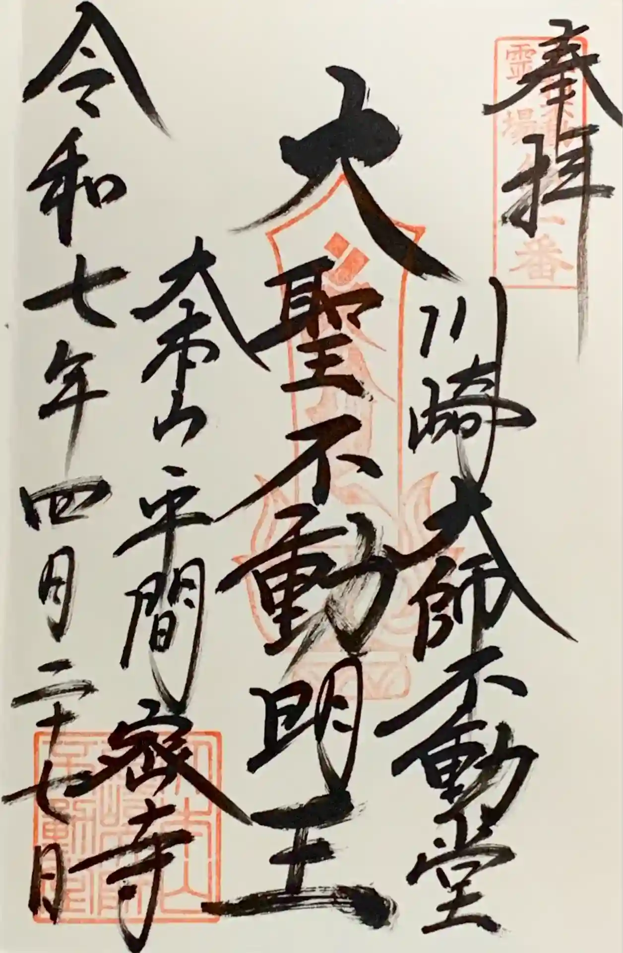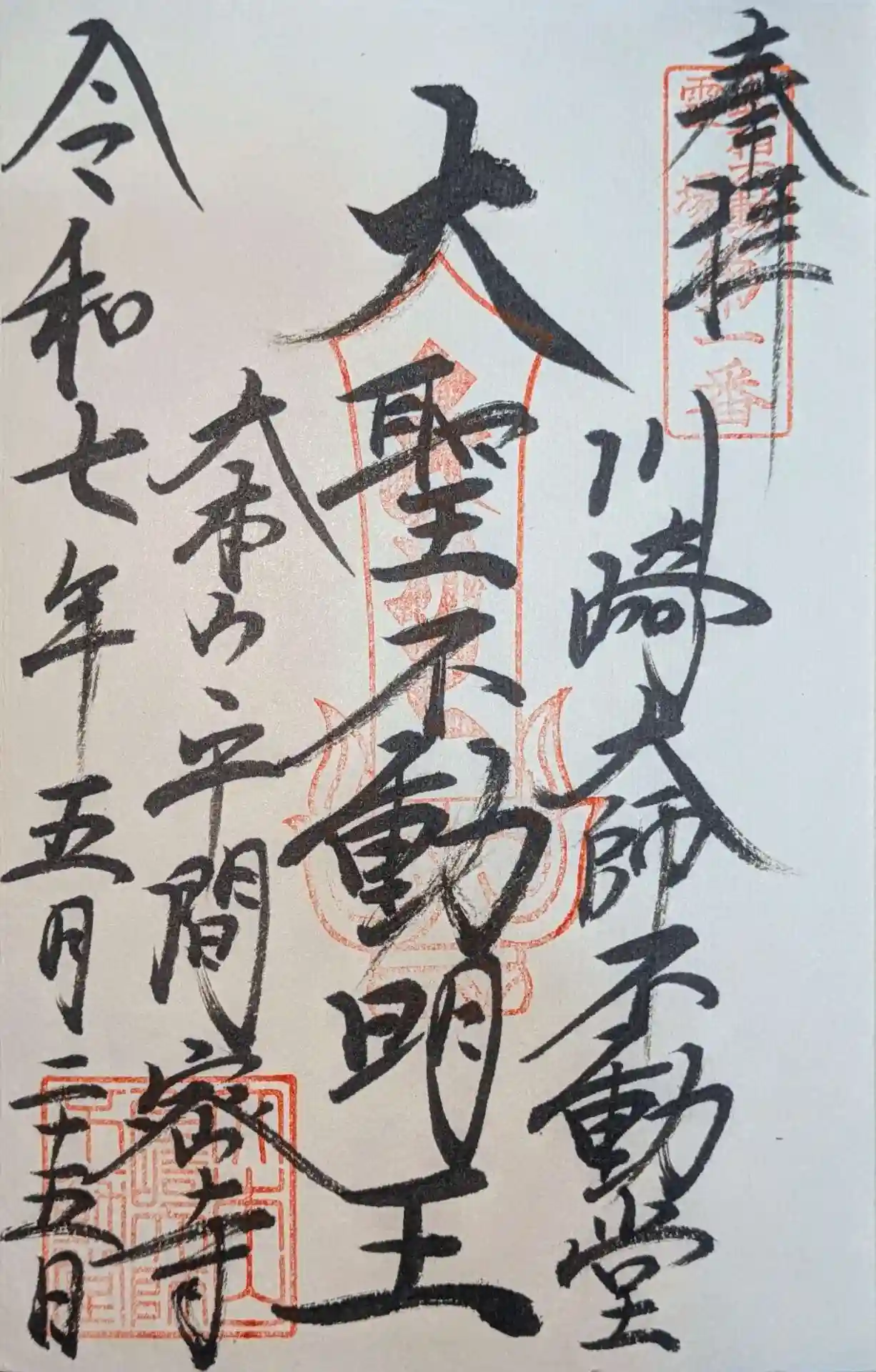 川崎大師②不動堂 大本堂のお隣でした。達筆の御朱印をお書き入れくださいました。