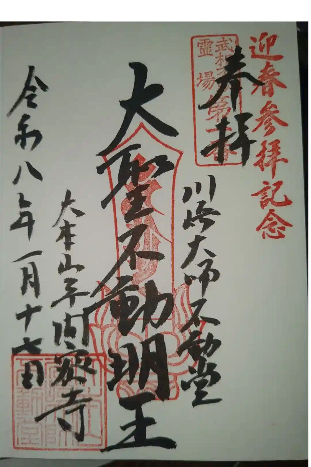 迎春参拝記念 不動堂御朱印