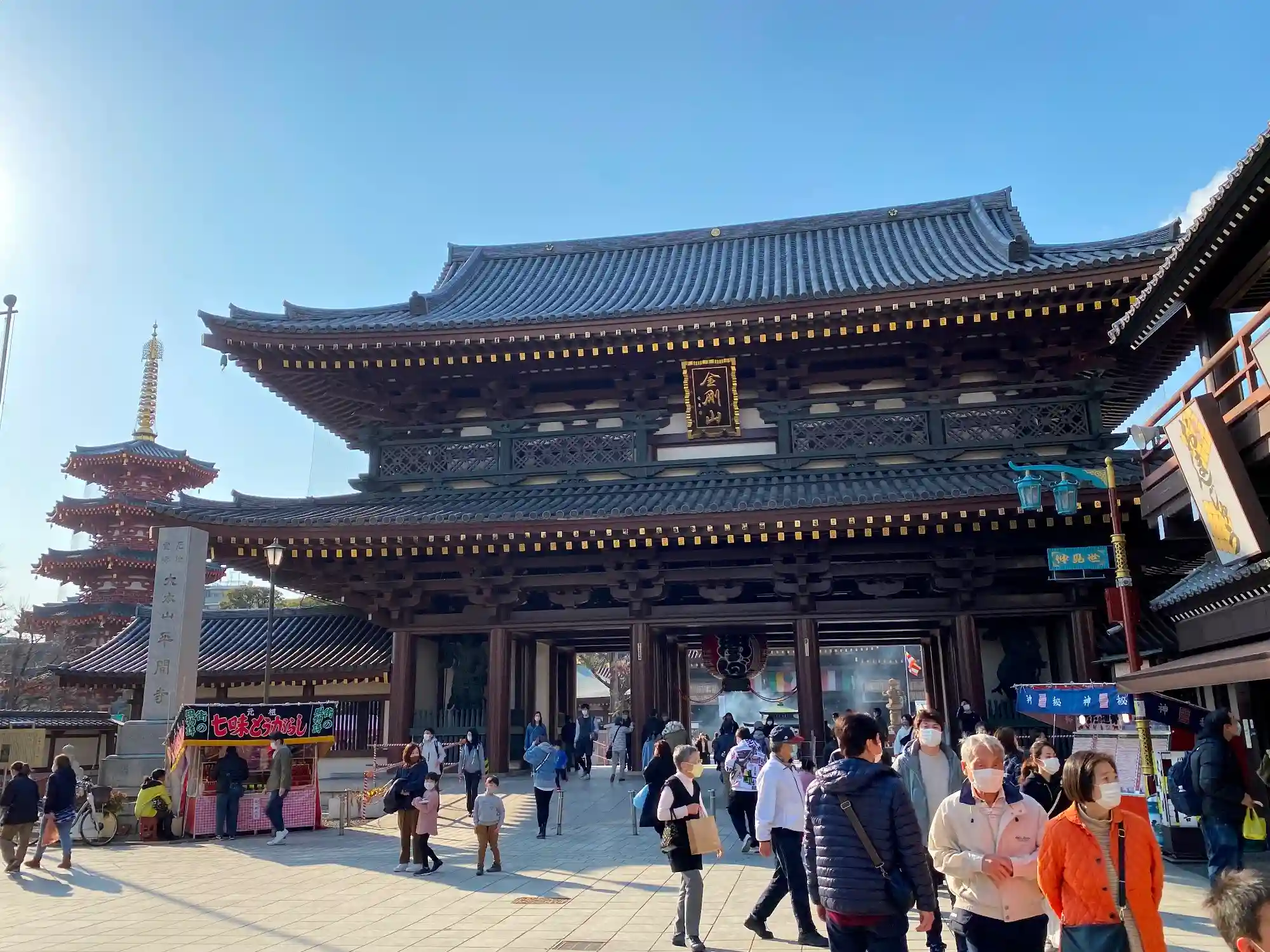 大師仲見世通りからの眺め。大きな山門に五重塔。インパクトと十分。これだけで、観光地としても合格!という感じ。