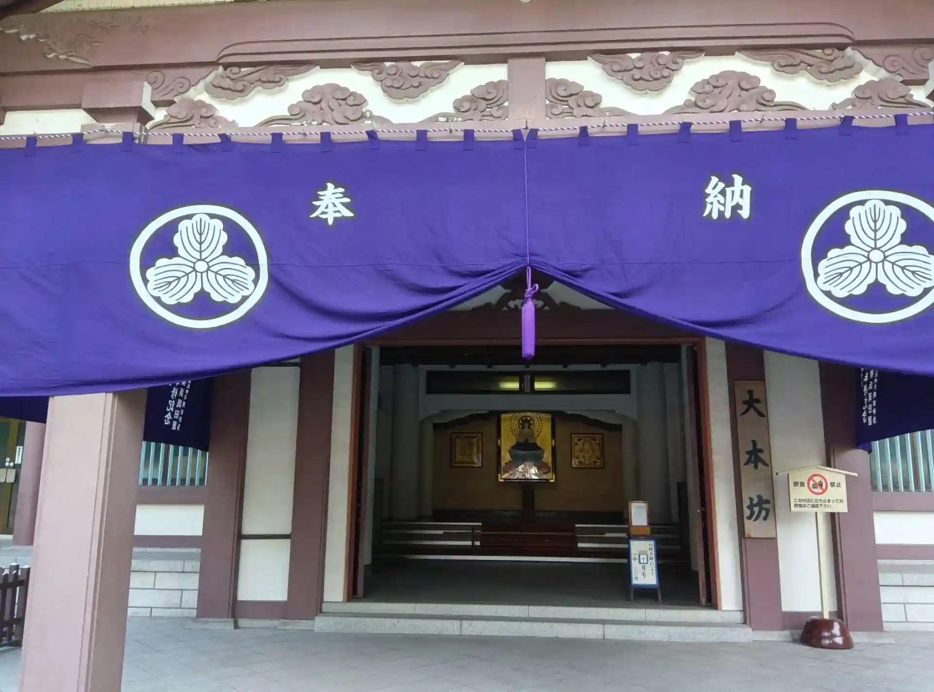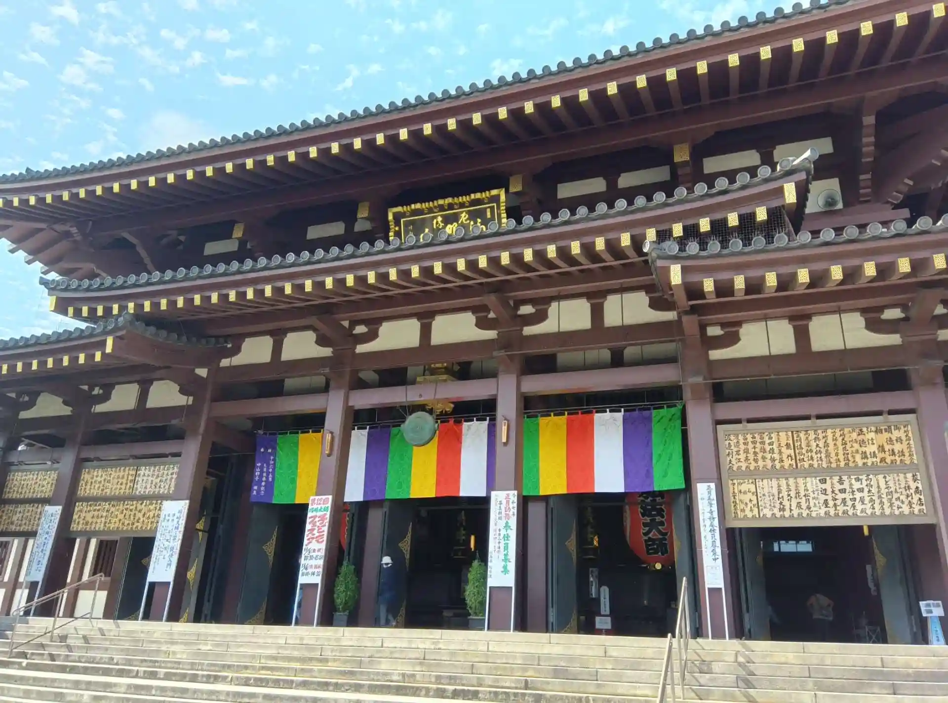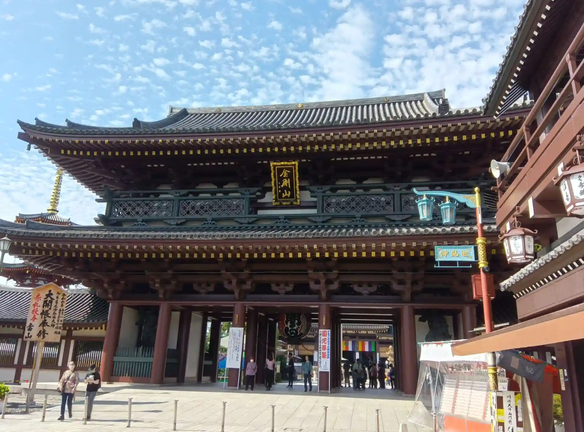 川崎大師駅からくずもちのお店が立ち並んでいる通りを歩き、次には飴とだるまが並んでいる通りを歩くと、川崎大師にたどり着きます。