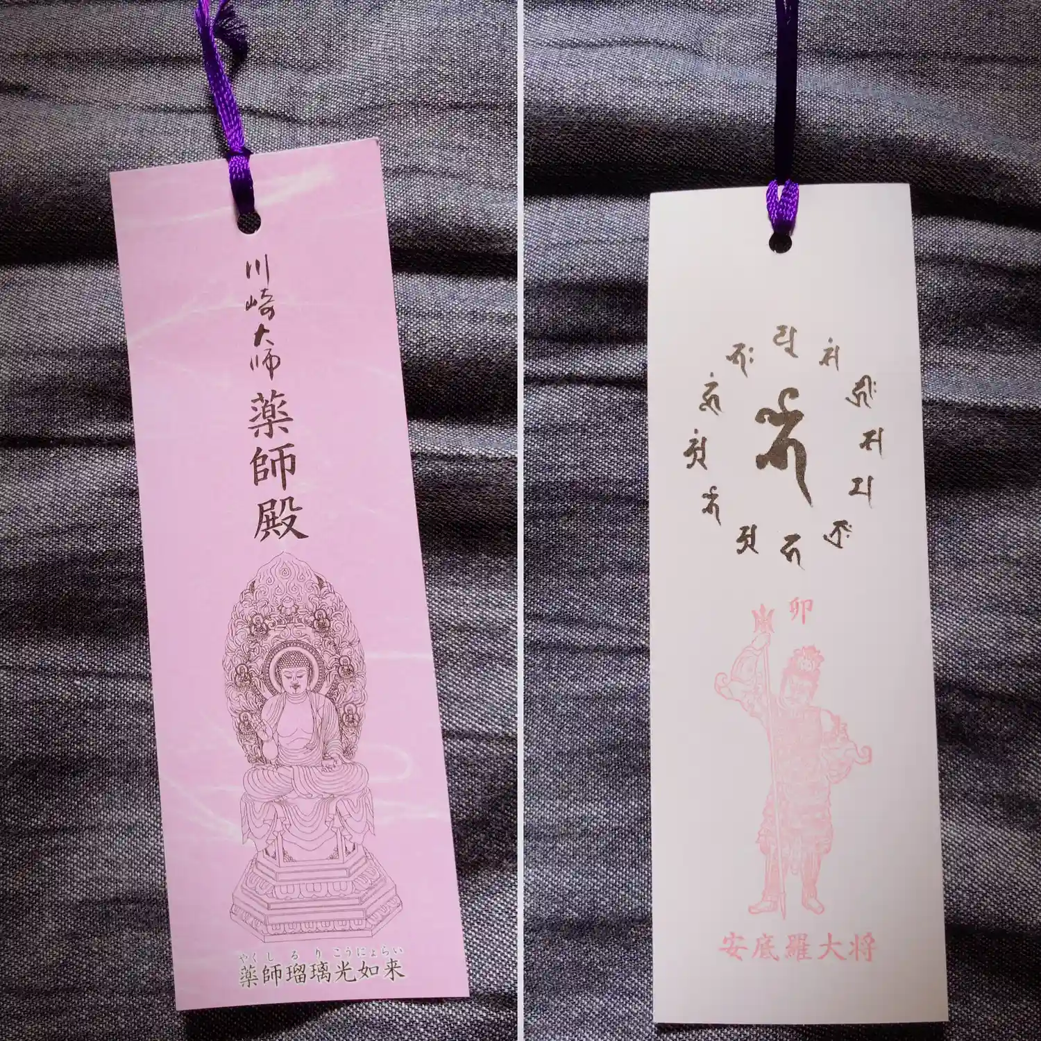薬師殿で頂いたしおり。自分で紐の色も選べたり(それぞれ色には意味がある…けど忘れてしまった😅)、裏には自分の干支のスタンプを押せるようになっていたりして楽しめました♡