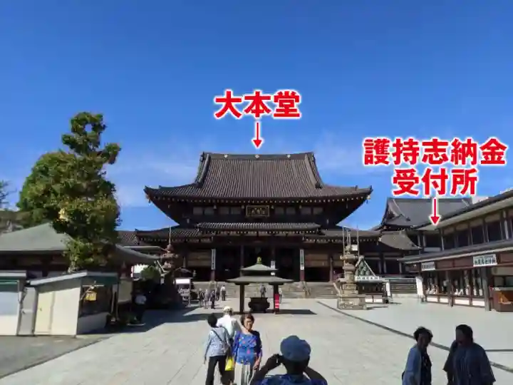 厄除遍照殿の御朱印は、大山門をくぐった先の大本堂か、その手前にある護持志納金受付所でお受けできます。