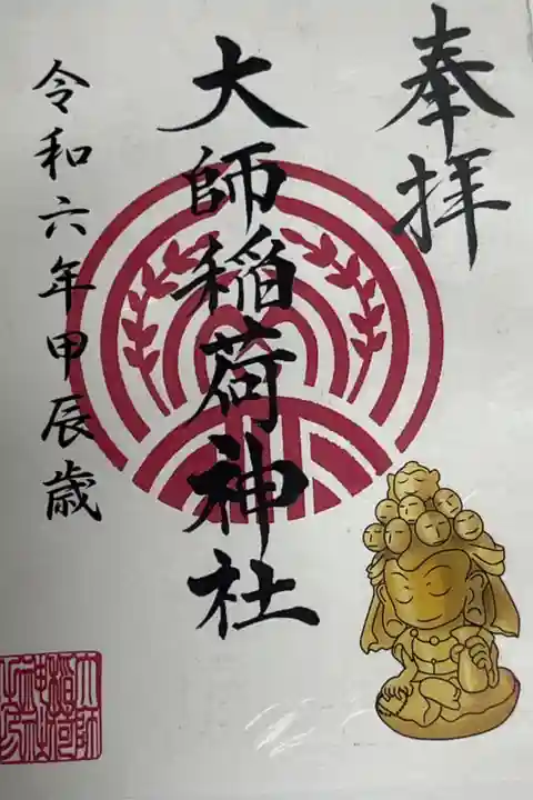 今日の最後は大師稲荷神社様へ。御祭神は大歳神。大宜津姫神と尾船豊請姫神が合祀されています。創始は源義家の旧臣平間某によってこの地に勧請されたといわれています。その後、永禄2年には小田原の北条家の領地となり朱印地3石を寄付されました。江戸時代には大師平間寺の別当神社となり明治6年には大師稲荷神社と称されて村社となりました。