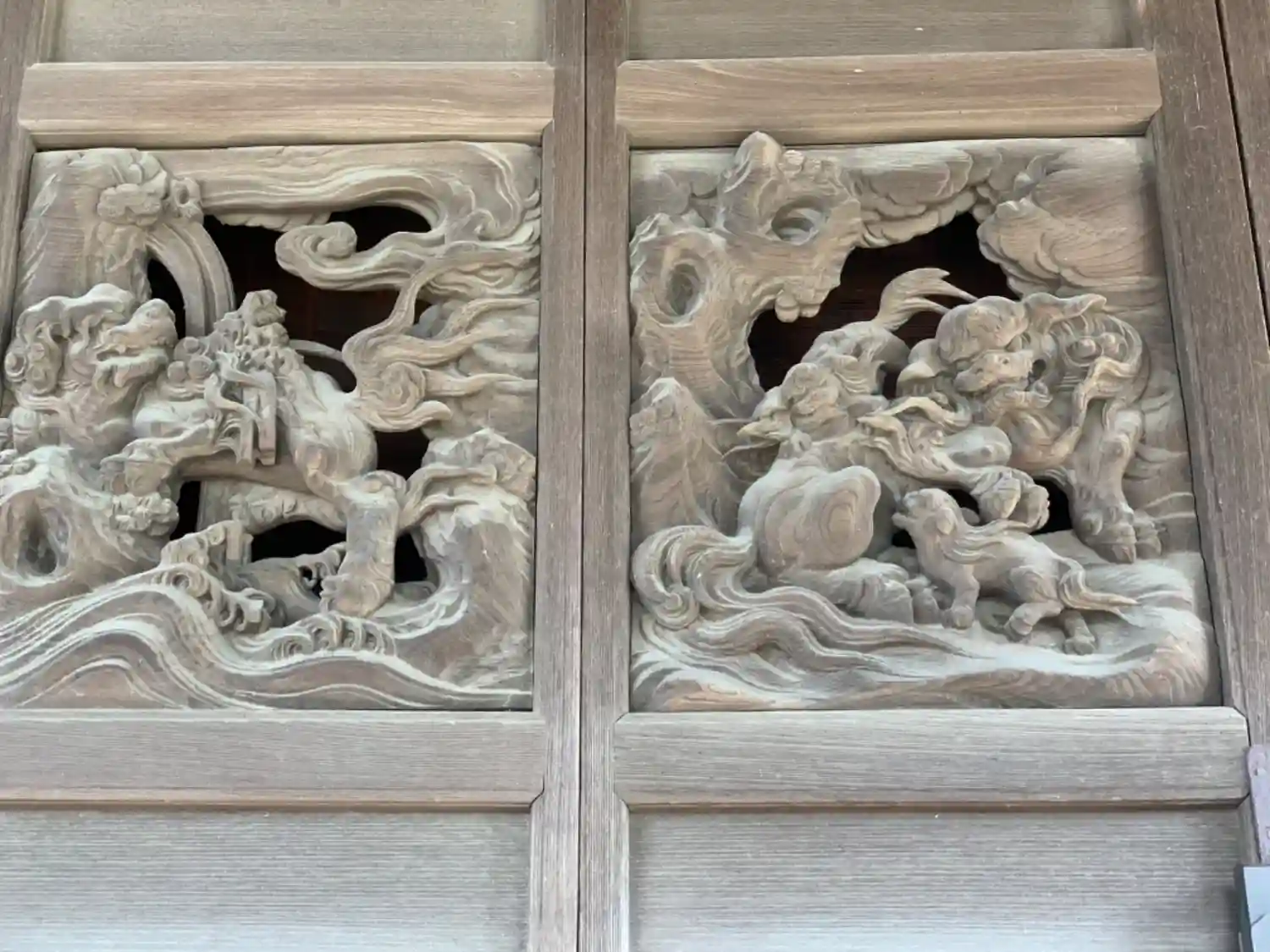 向拝中備の龍の彫刻