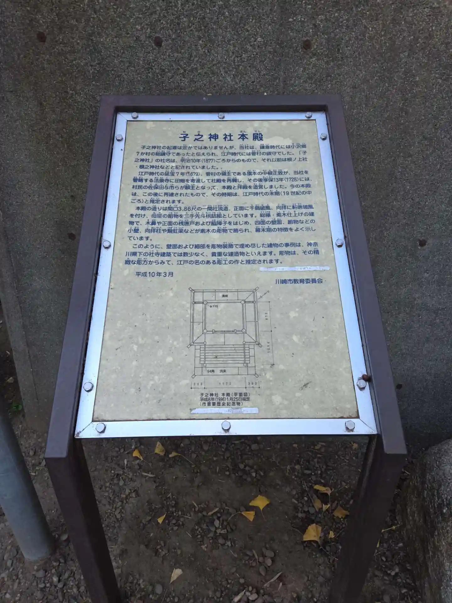 「子之神社本殿」説明板