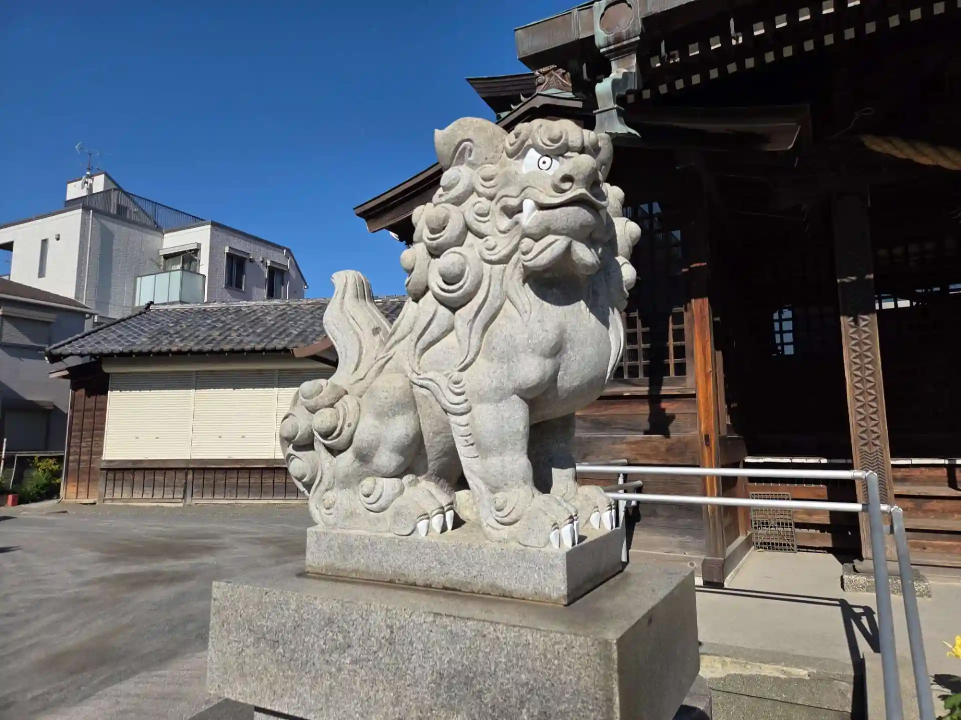 川崎駅前を離れ旧小倉村、現在は住宅地となっています。随分と新しめの神社が目に入りました。天王社(八雲神社)と八幡社を合祀して八幡社の社地に戦後に創建された神社です。八幡社の創建は鎌倉時代と伝わっている古社で、一方天王社は江戸時代、祭礼の際に神輿を鶴見川で洗っていた際に誤って流してしまったという逸話があります。これが現在の鶴見神社に流れ着き、今ではその神輿は「横浜最古の神輿」となっているそうです。