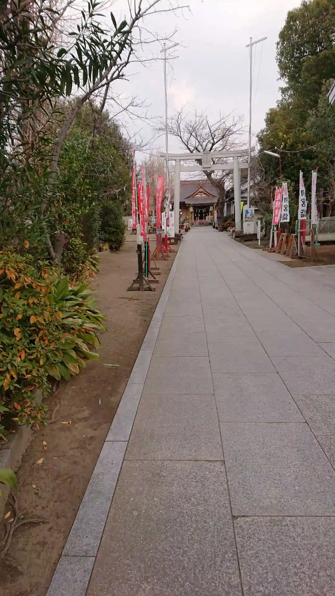 鳥居のところに進入禁止の表示がありますが、車のまま鳥居をくぐって境内左手に駐車できます。電話で確認…