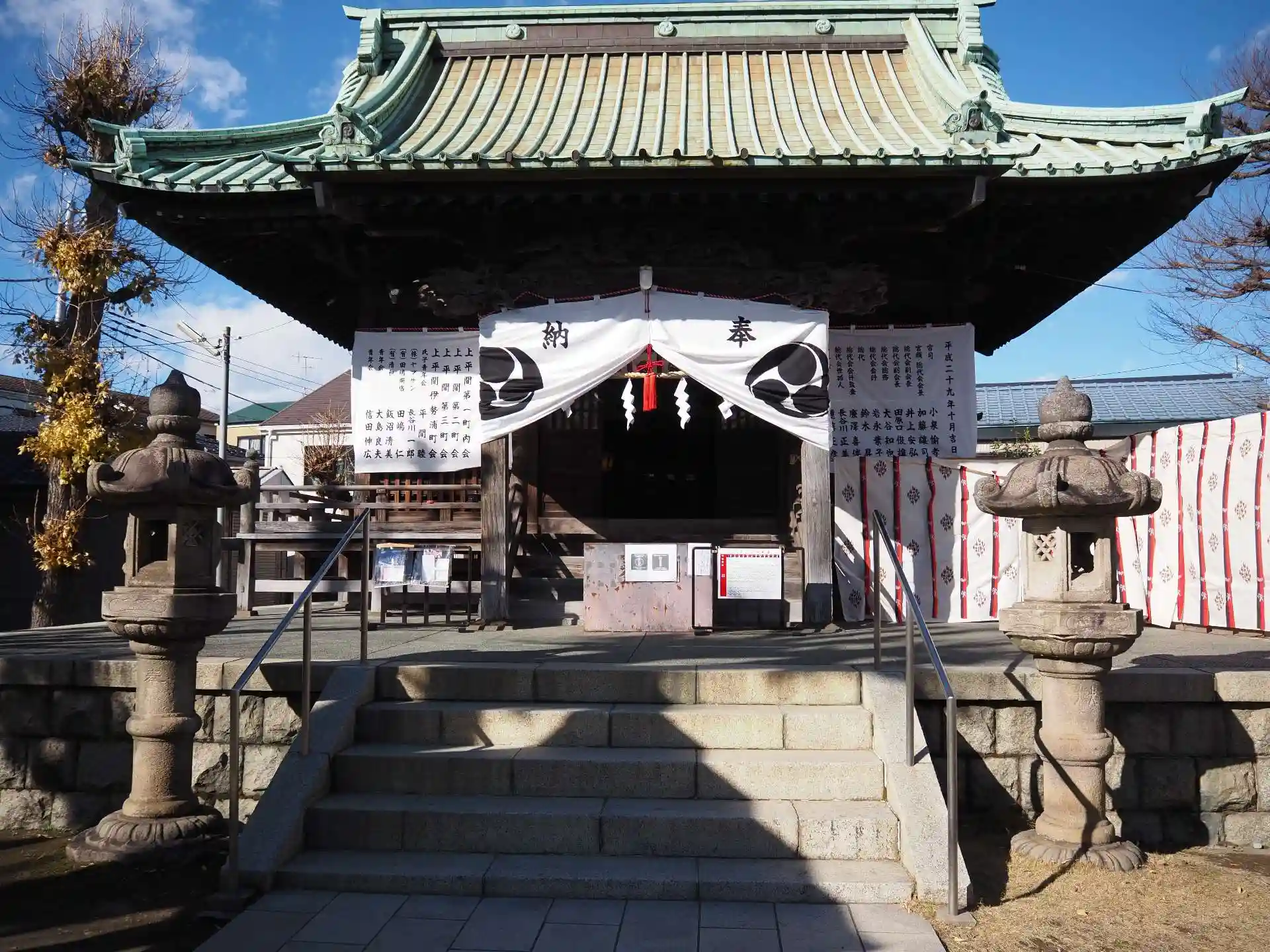 神奈川県川崎市JR南武線平間駅から徒歩10分程度の八幡神社です。いつもは無人なのですが、今日は宮司さんが新年に向けての準備をされていて御朱印を頂けました。来年も皆様が幸せでありますように。