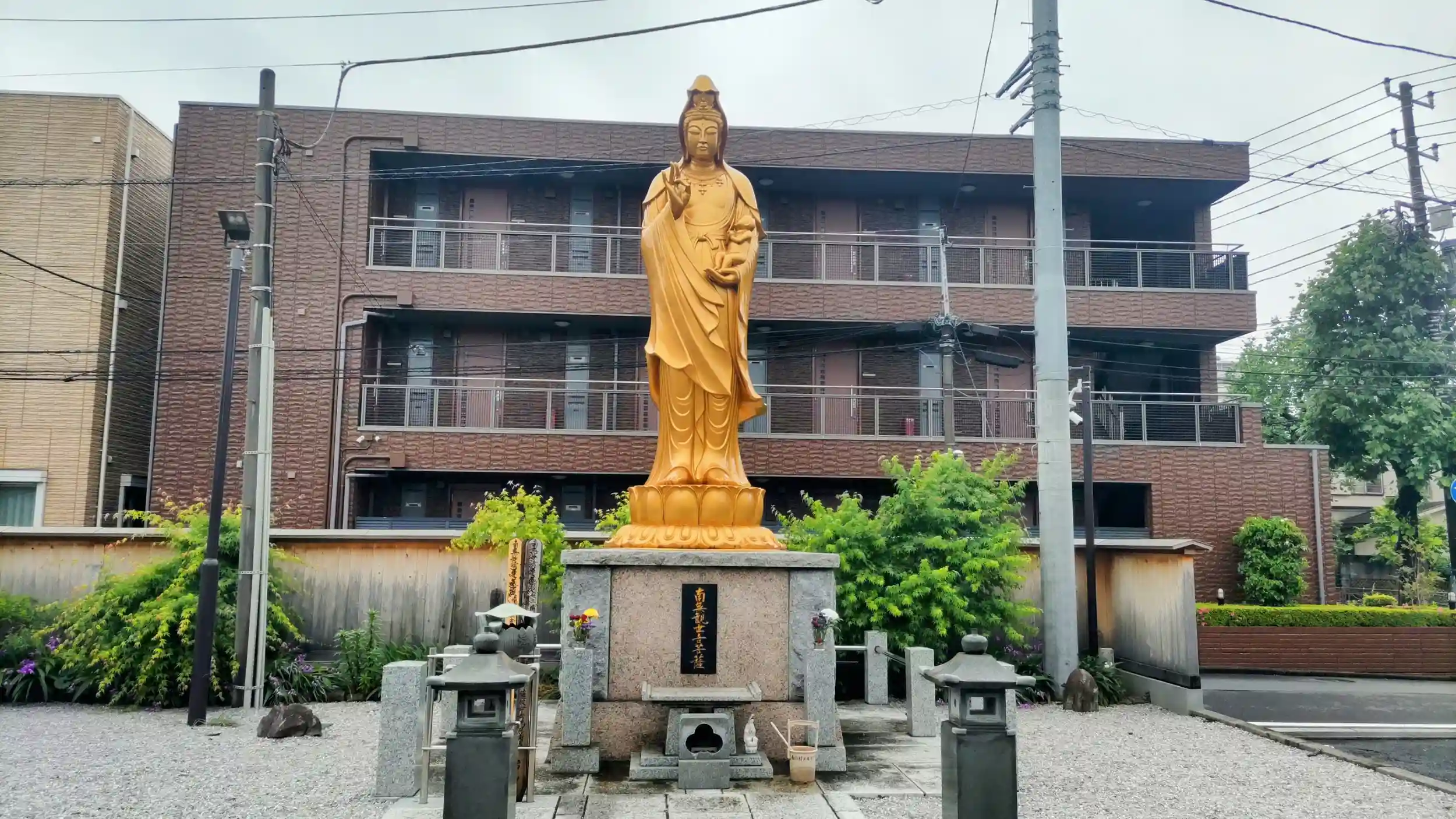 本堂裏手には大きな金の観音さまもいらっしゃいます。
