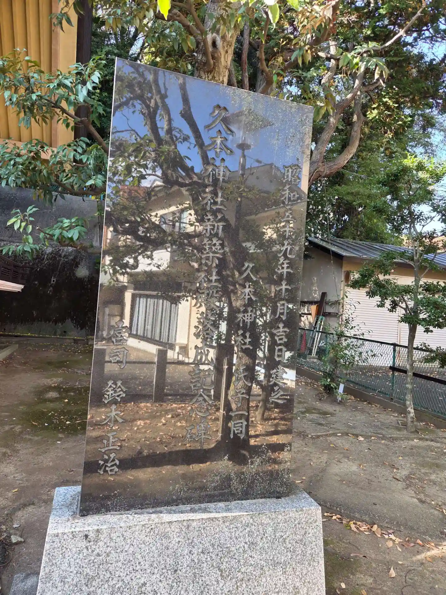 昭和五十九年(1984)建立の久本神社新築社殿落成記念碑