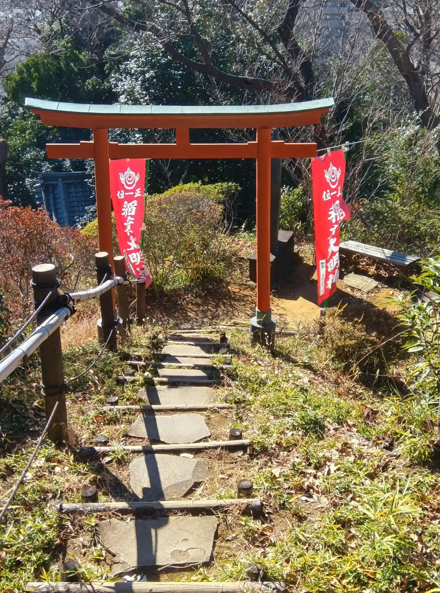 お寺の向かって左側上がっていくと小さなお宮さんがあります。