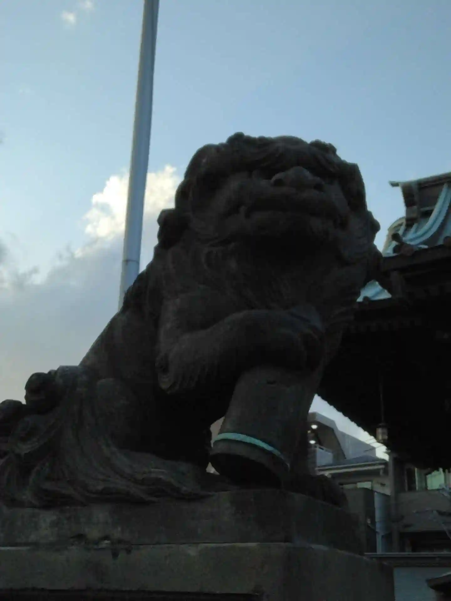 砲丸を抱いた狛犬