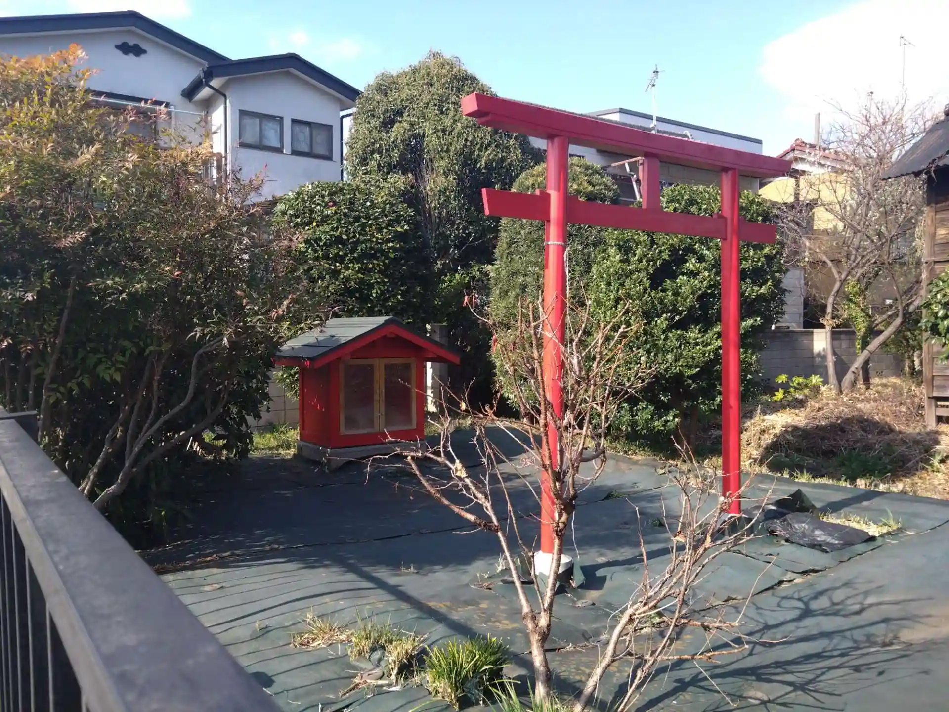 歩いていたら赤い鳥居と祠を見かけました。詳しいことはわかりません。