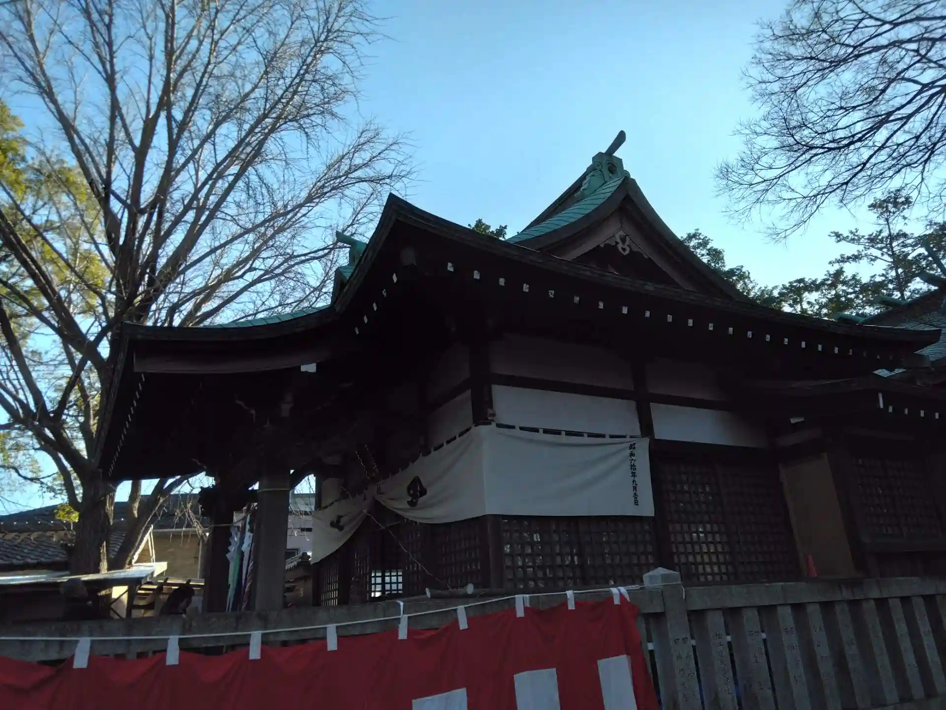 サッカーJリーグ川崎フロンターレの本拠地である等々力球技場の向かいにある鎮守様です。