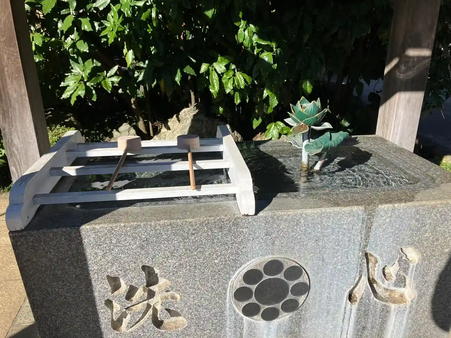 手水舎にはオシャレな蓮の花がある。