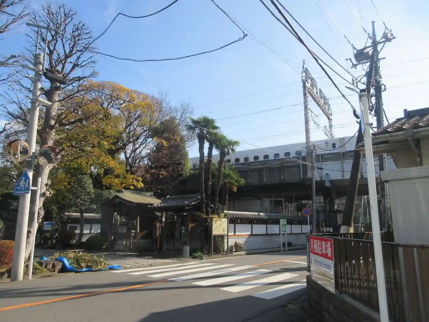 背後の高架橋はJR横須賀線で、並行して新幹線が通過