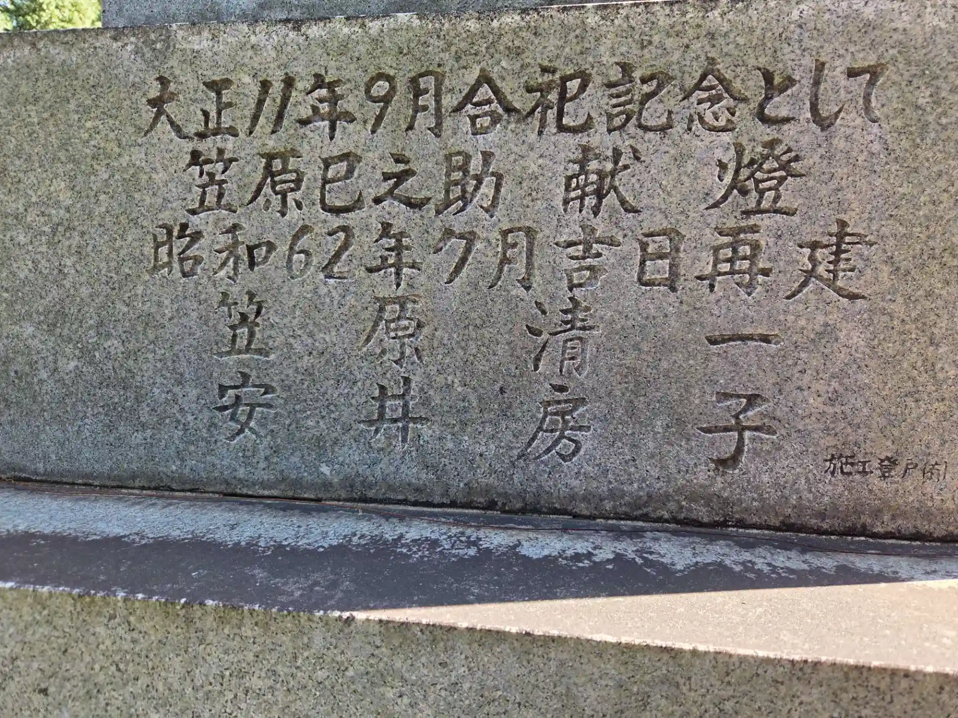 昭和六十二年(1987)奉納の燈籠