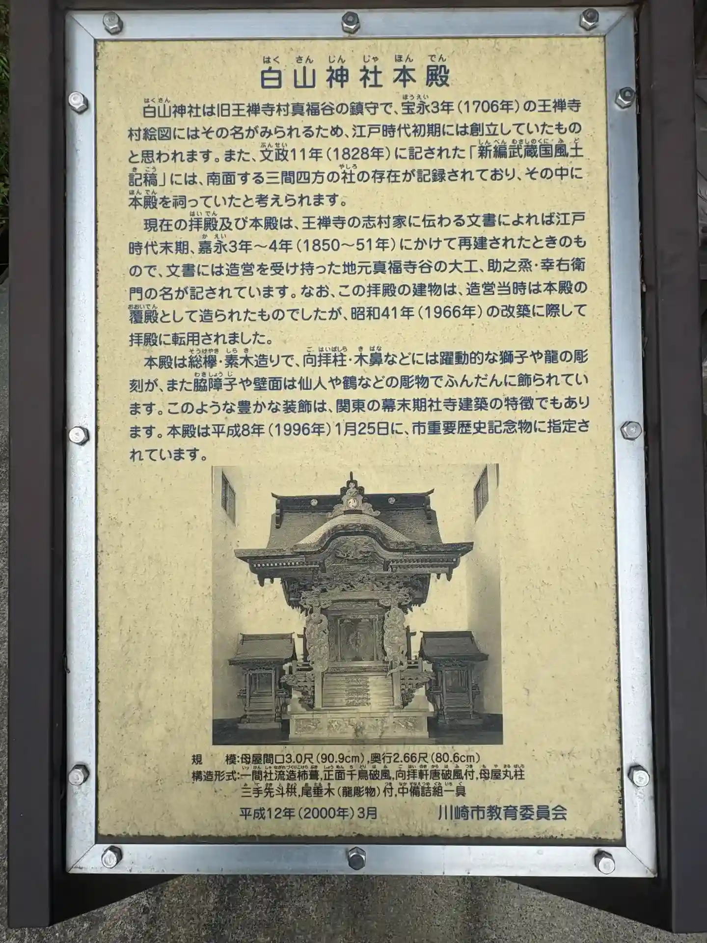 嘉永三年(1850)建立の本殿(市重要歴史記念物)