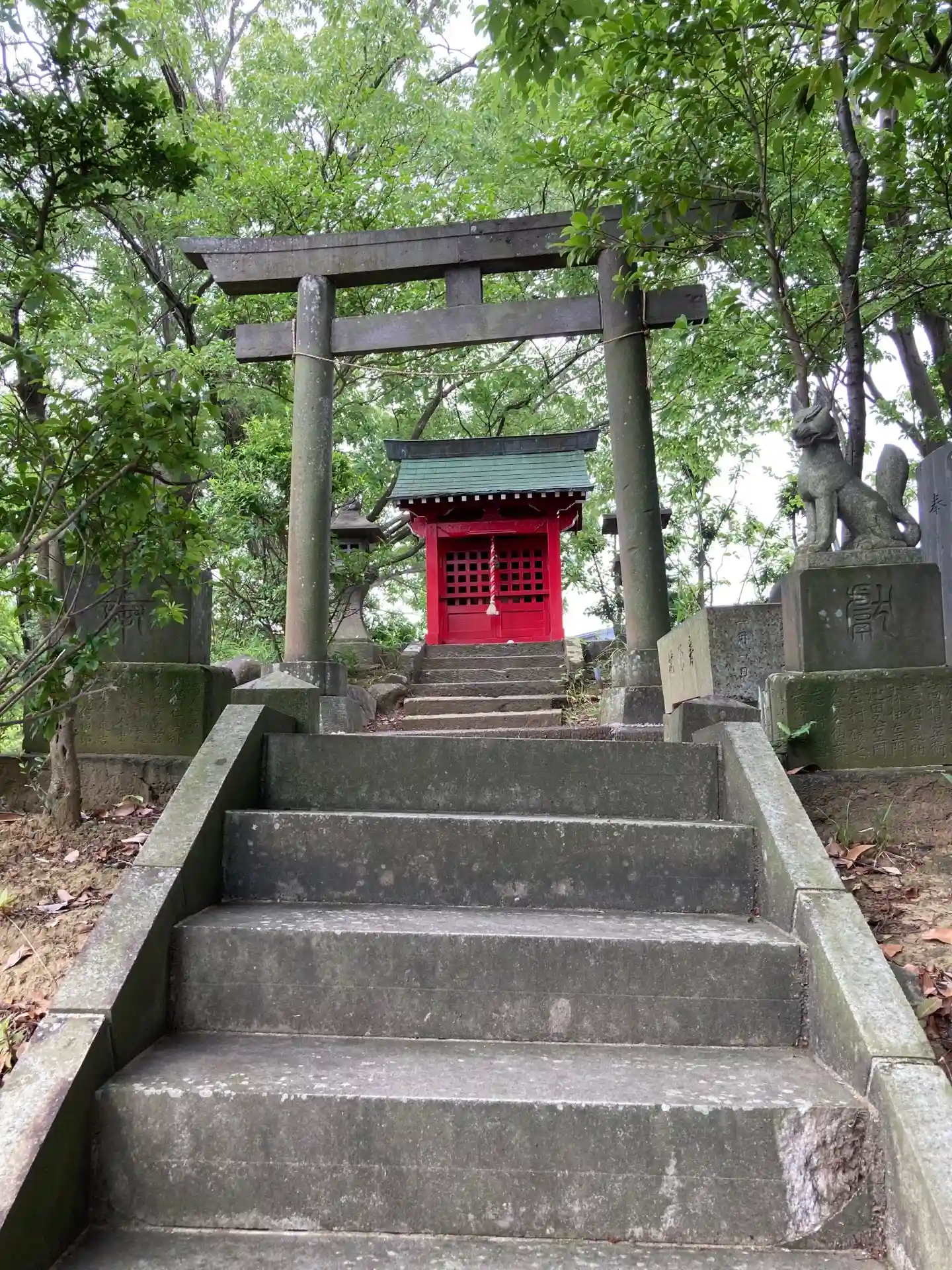 以前は山の上の崖に近い部分にあったのですが、現在では地盤の悪化が懸念されて持ち主の庭内に移設されています。