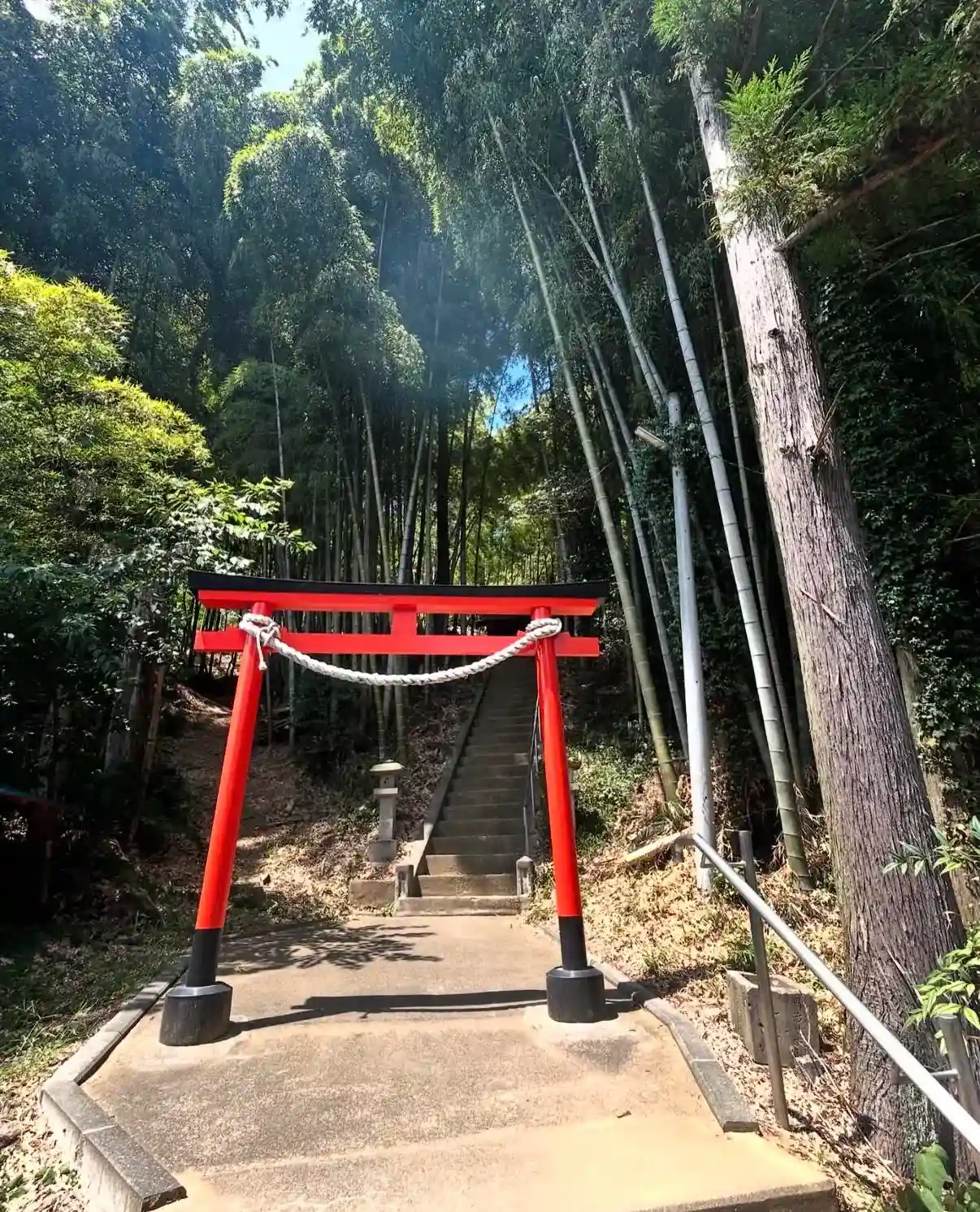 先日参拝しようと目の前まで来たのだが、駐車するところが見つからずスルーしていました。鎮座地の古沢地区は鎌倉以来の御家人が開拓した地区だそうで、主君義経が討たれた後、亡き主君を偲んでこの地に祀ったとされています。又、頼朝の挙兵を知った義経が、奥州より頼朝のもとへ向かう途中この地で一夜を過ごし村人から歓待を受け、礼として小刀・鉄扇を贈ったとされています。後にこれらを祀ったのが始まりともされていますが、創建等の詳細は判ってはいません。ただ、以前は久能社と称していたことは判っています。好意的に見ると当初の創建時は鎌倉時代、義経は謀反人の扱いなので、祭神不詳との記録だったと考えられます。神社の由緒はどこまで事実か判りませんが、そもそも「神様」も不確かな存在(身も蓋もない)なので、伝承に乗っかって信じて歴史を見ていくのも楽しいかもしれません。長い石段を上ると竹林の中に空いたスペースに社殿があり、四方は竹林。何となく京都嵐山にいるような気分(ちょっと盛りすぎ)不思議な神社でしたが、すごく気になっていたので参拝できて良かった!