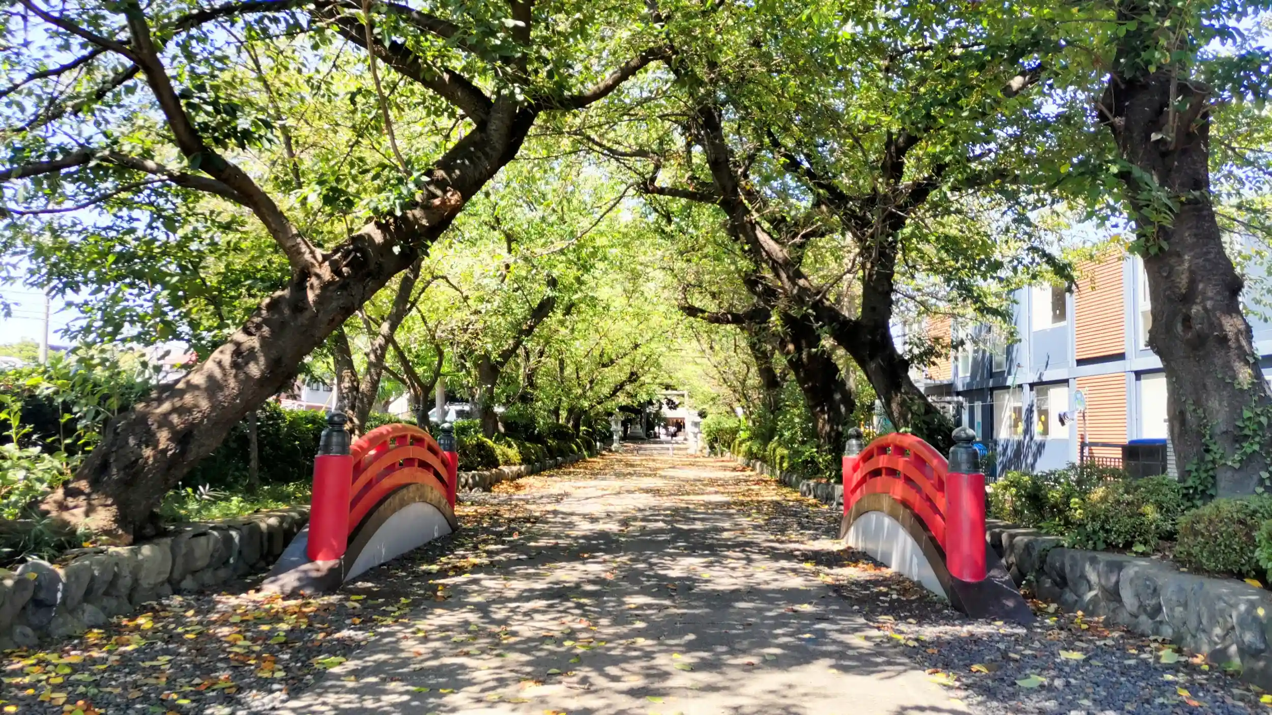 良い雰囲気の参道を進むと正面に拝殿、右手に境内社が二つありました。