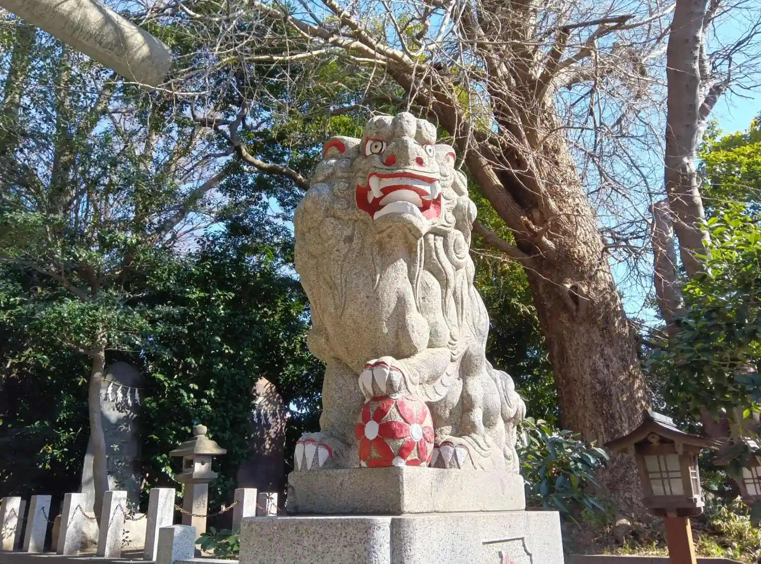 こちらの狛犬さんは一般的な狛犬さん。子狛犬君も顔立ちが大人です。