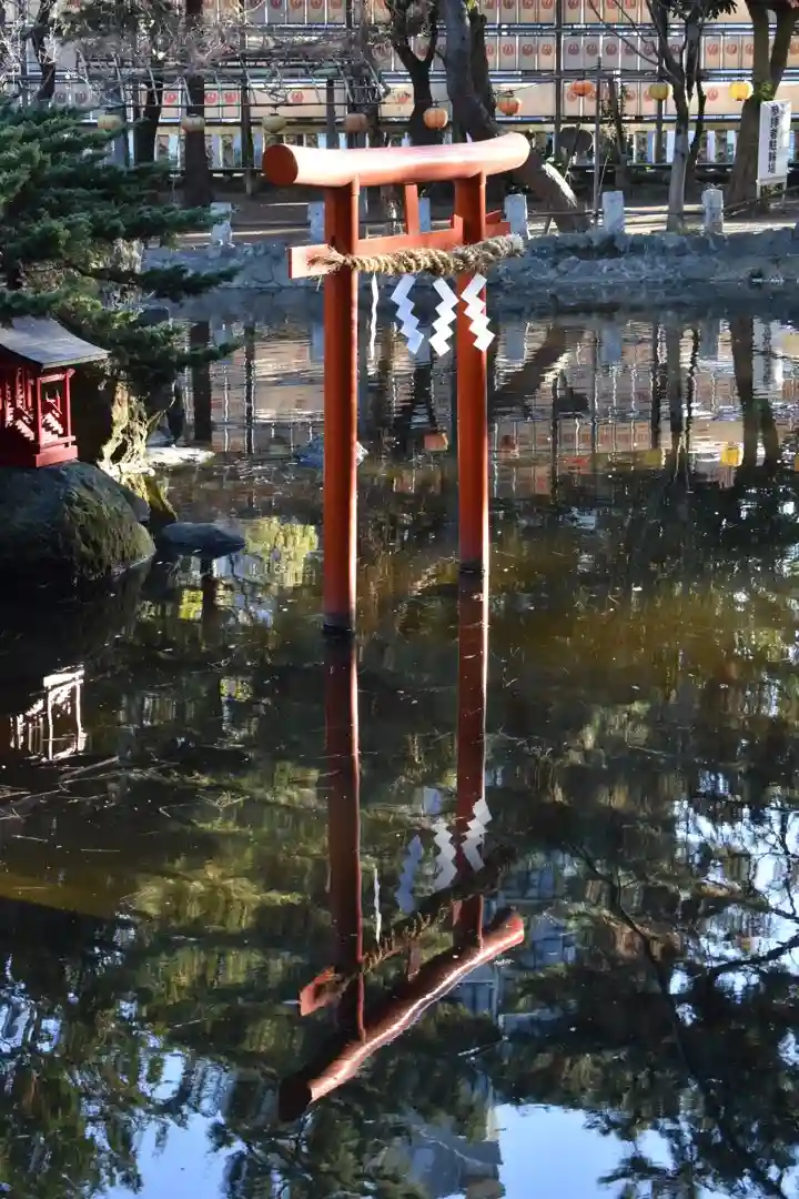 陽の入り方が良い時間で水面に映る逆さ鳥居♫