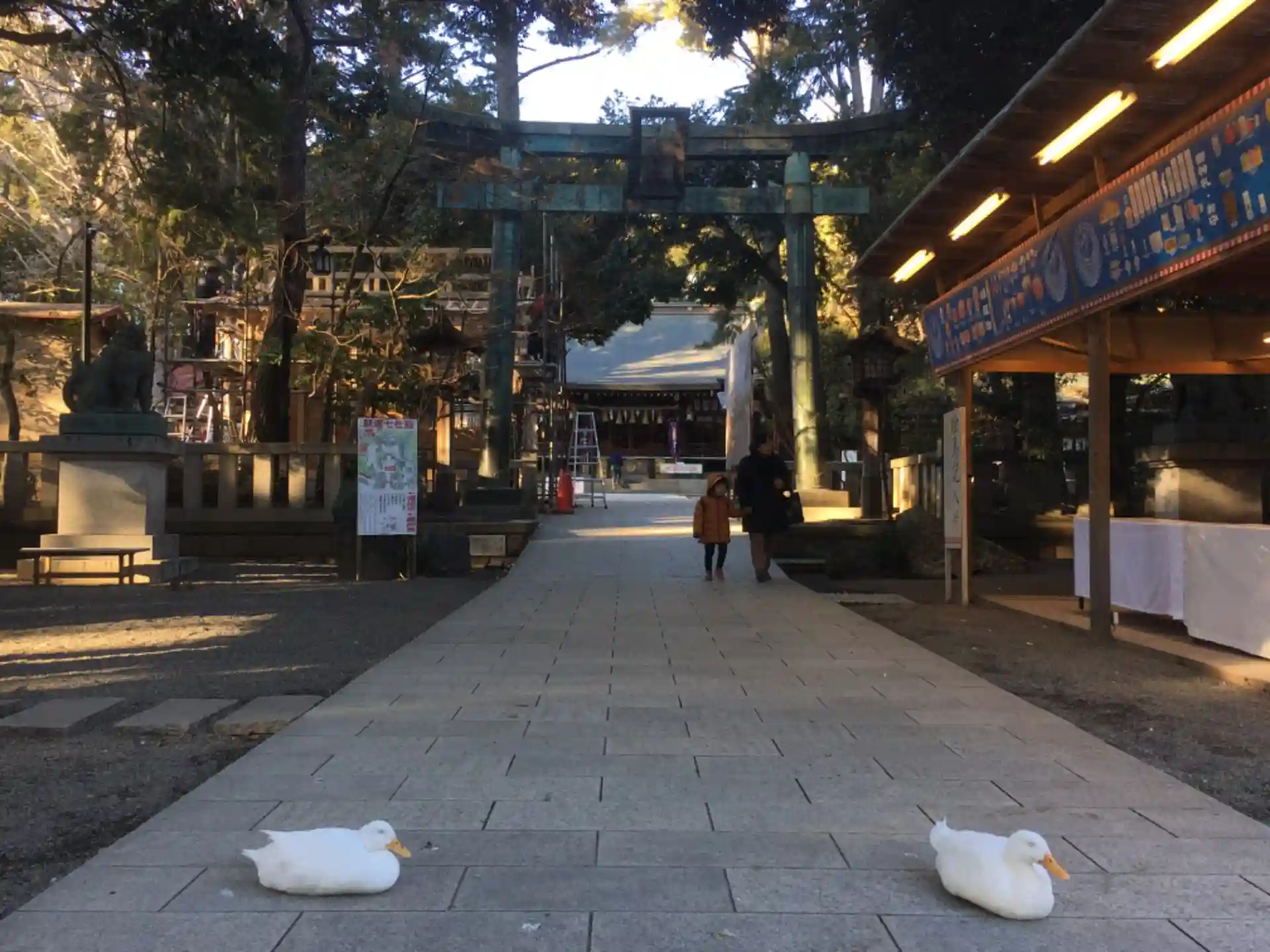 小さいですが参道を歩くアヒルさん。「今日は何をお願いしよっかなー?」みたいなかんじでしょうか?
