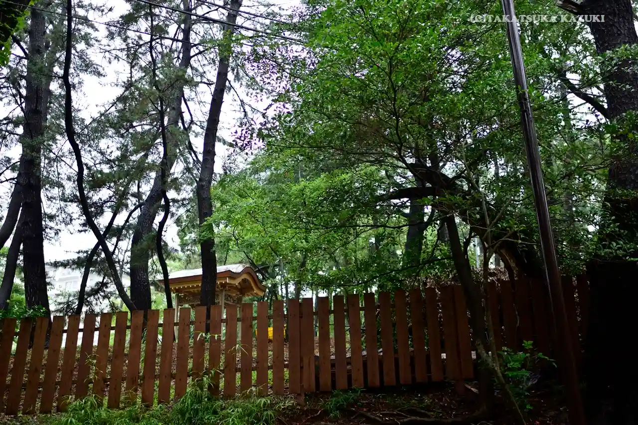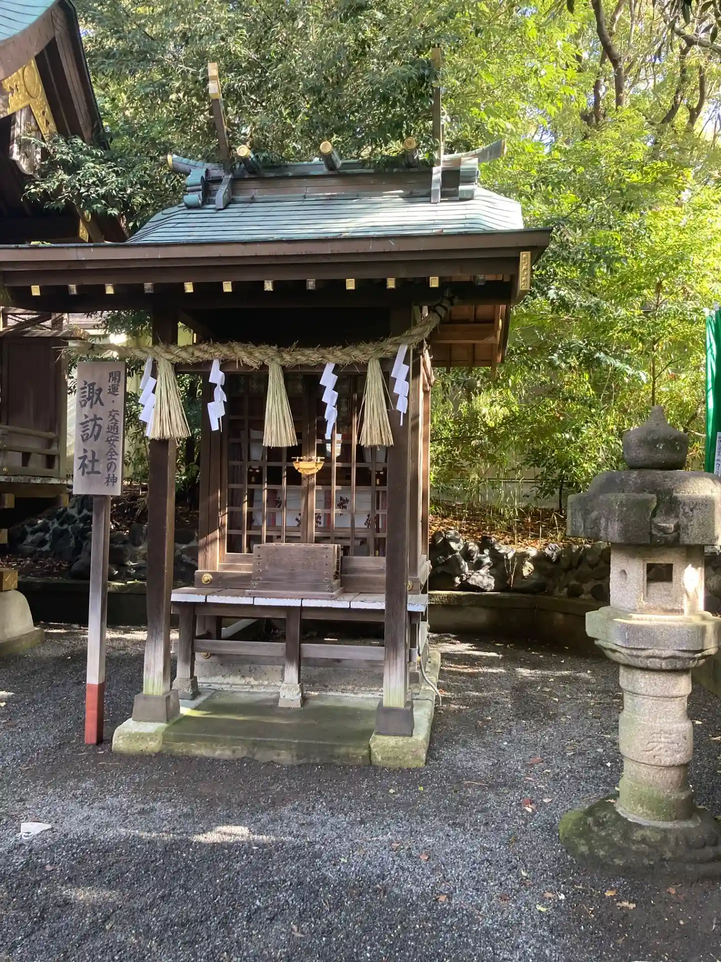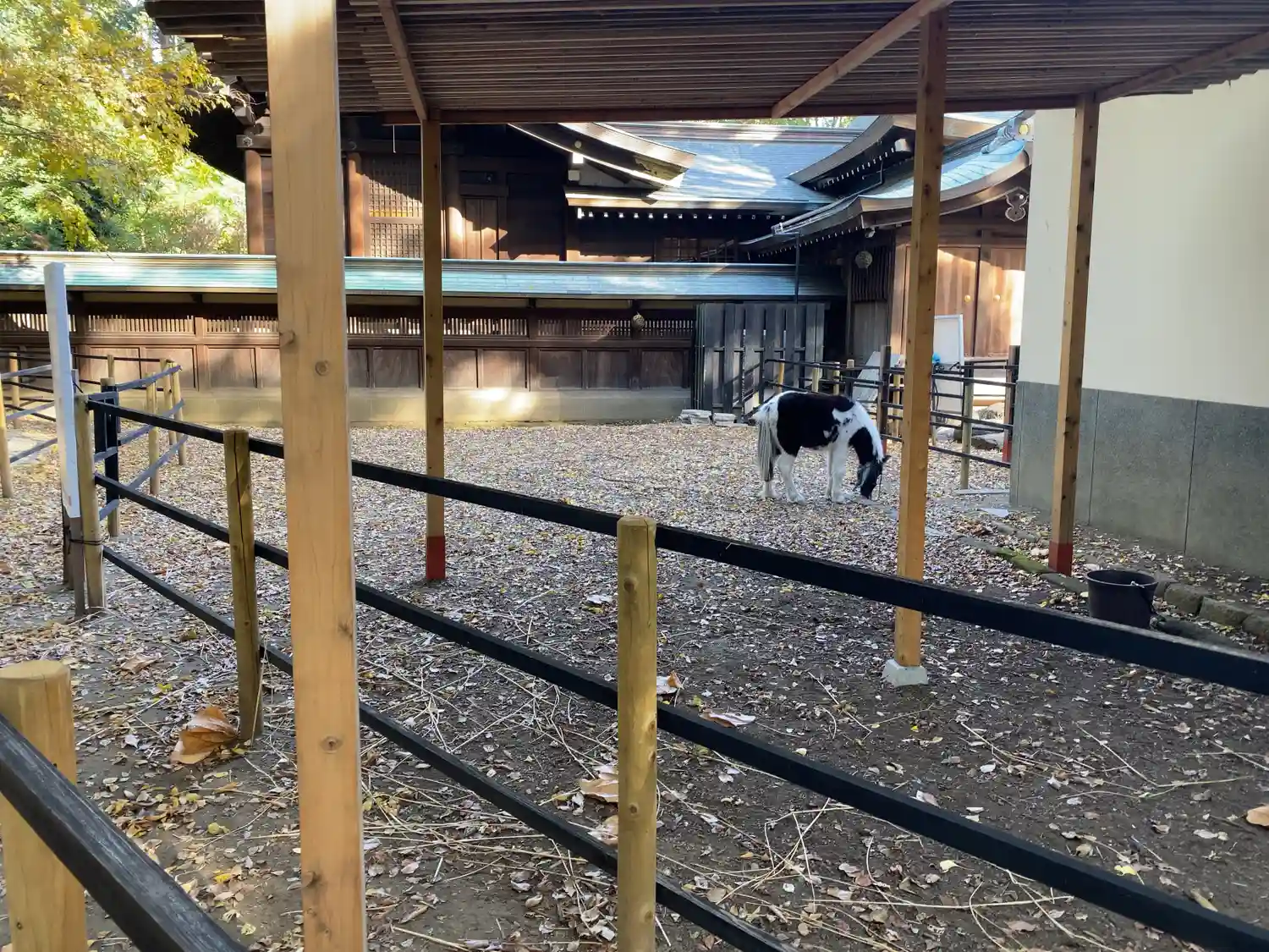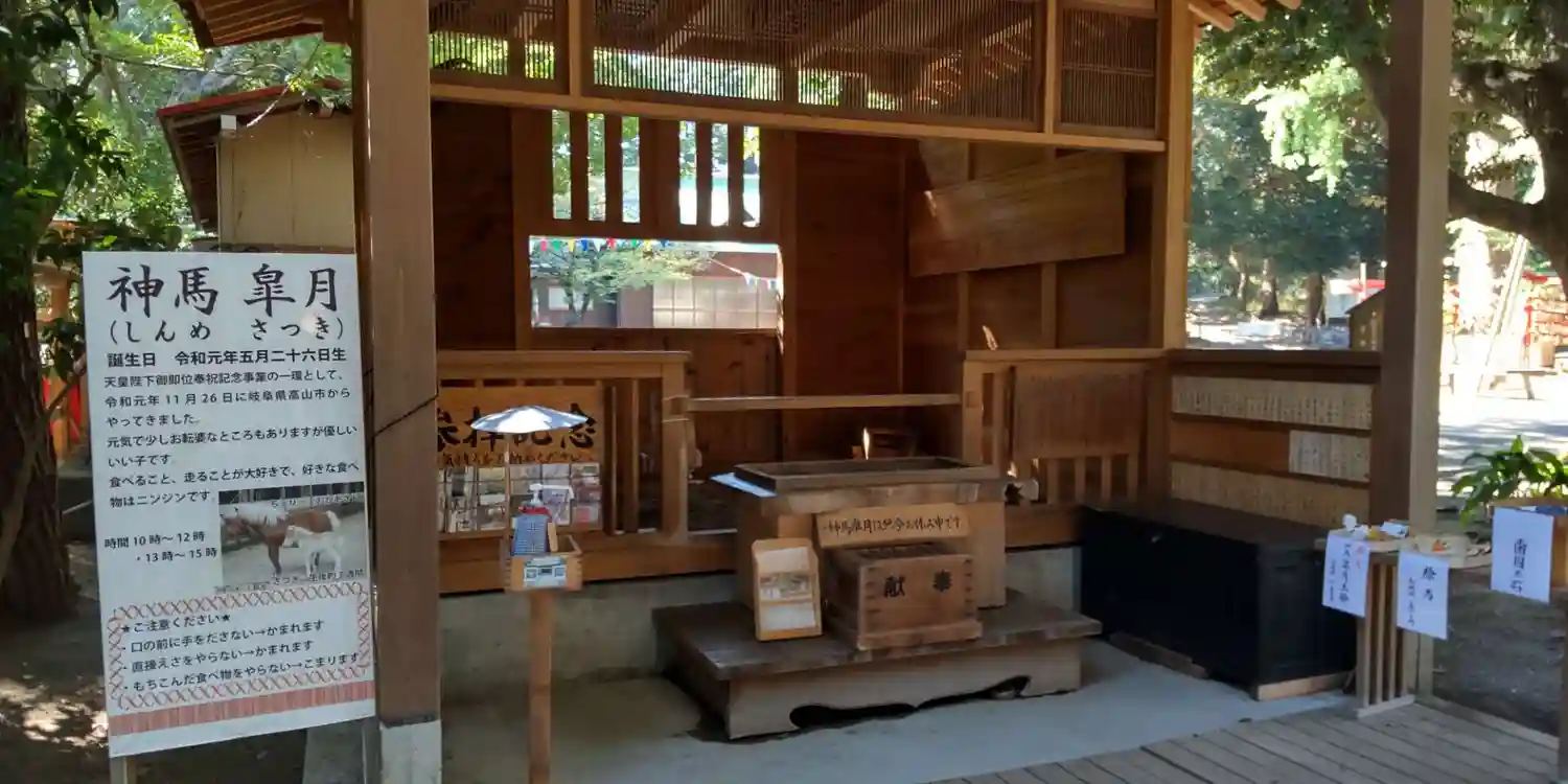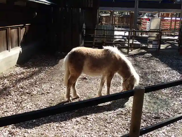諏訪社の前から振り返ると、さっき通った参道脇に<神厩舎>がある。