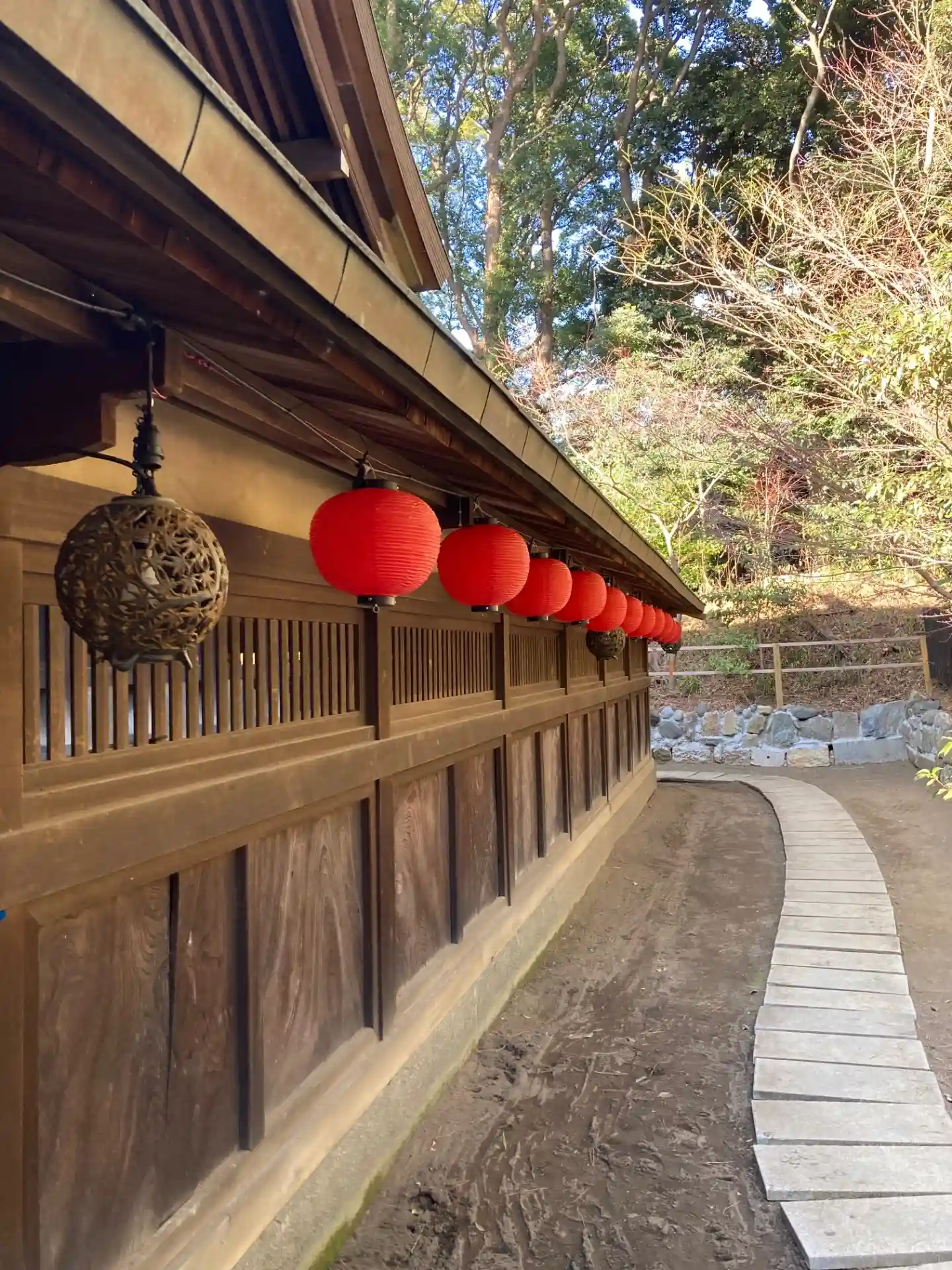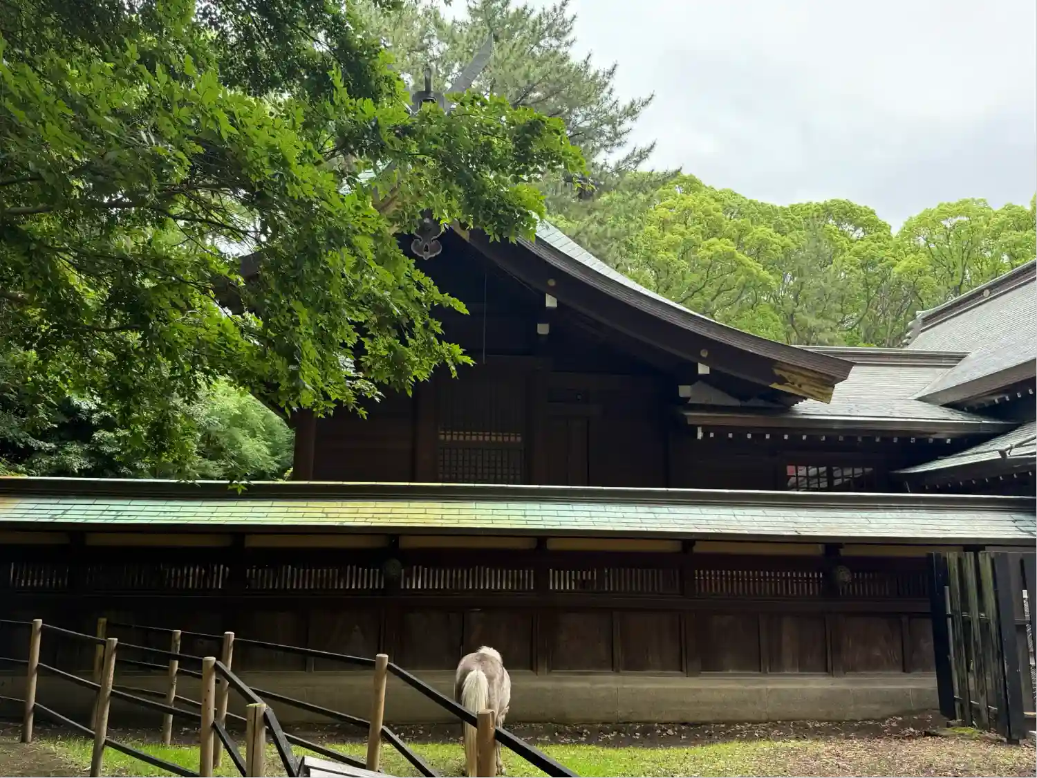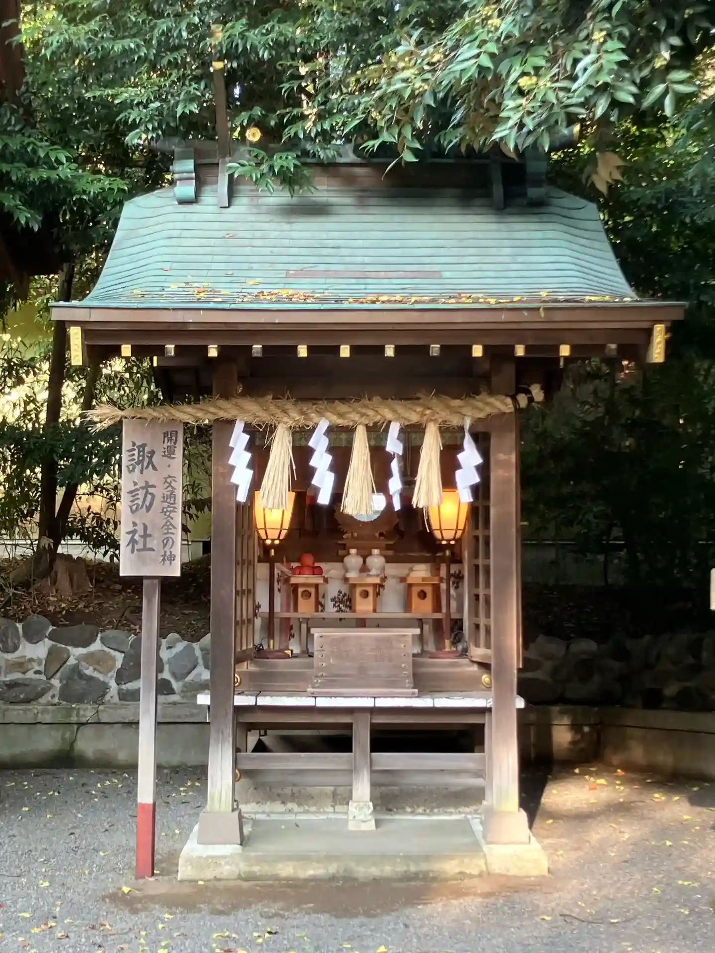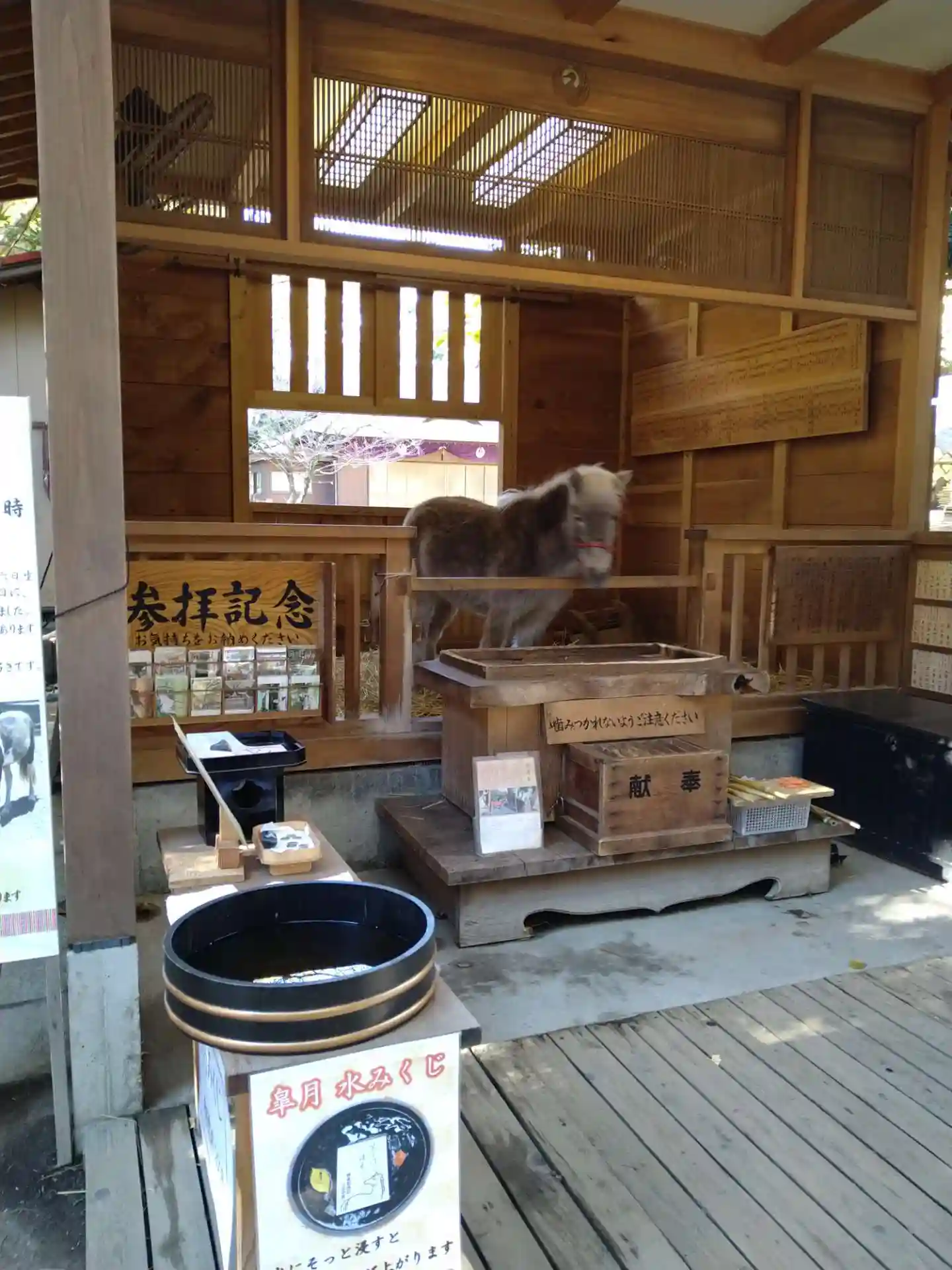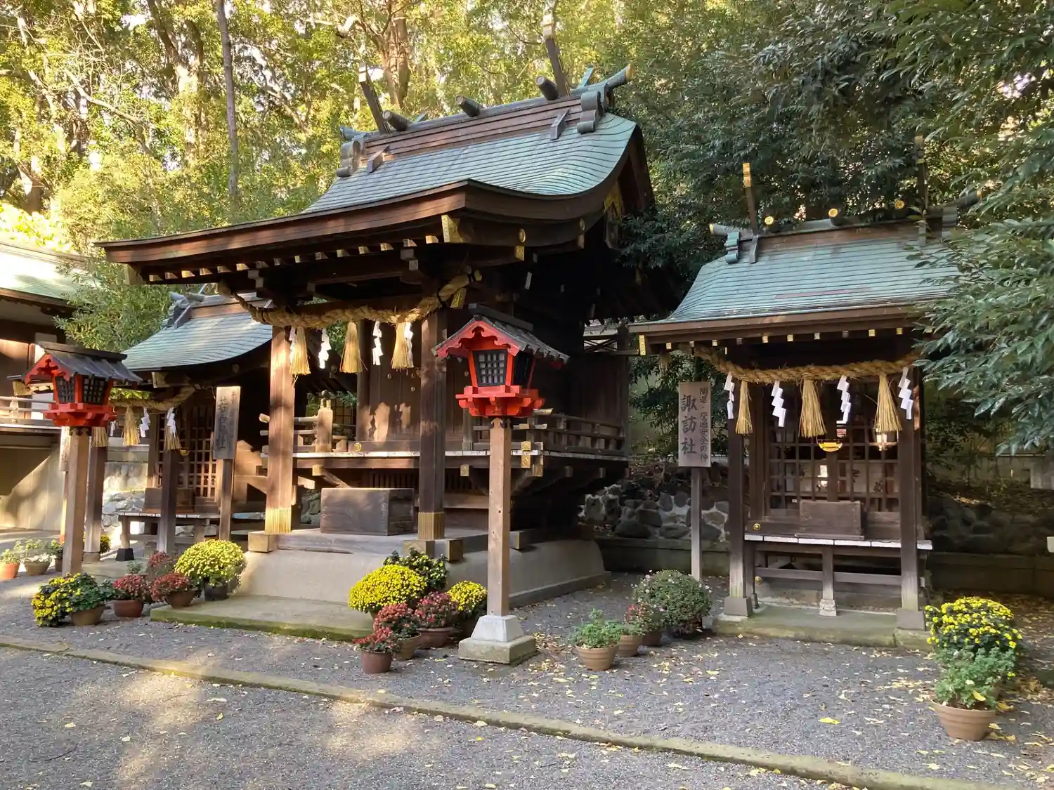 諏訪社の前から振り返ると、さっき通った参道脇に<神厩舎>がある。