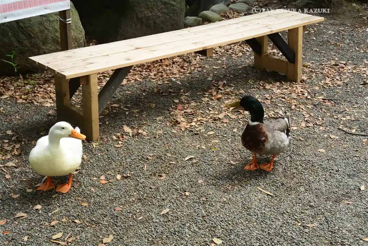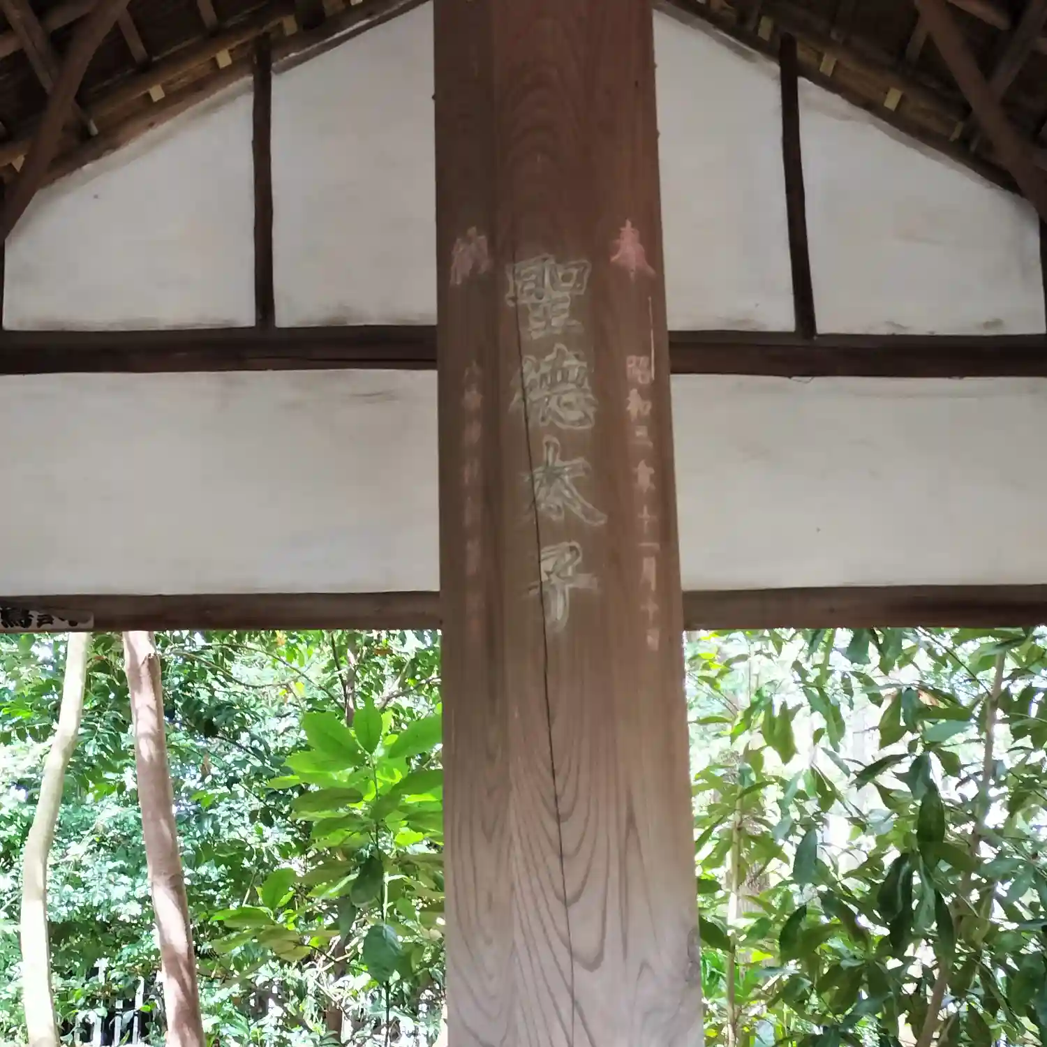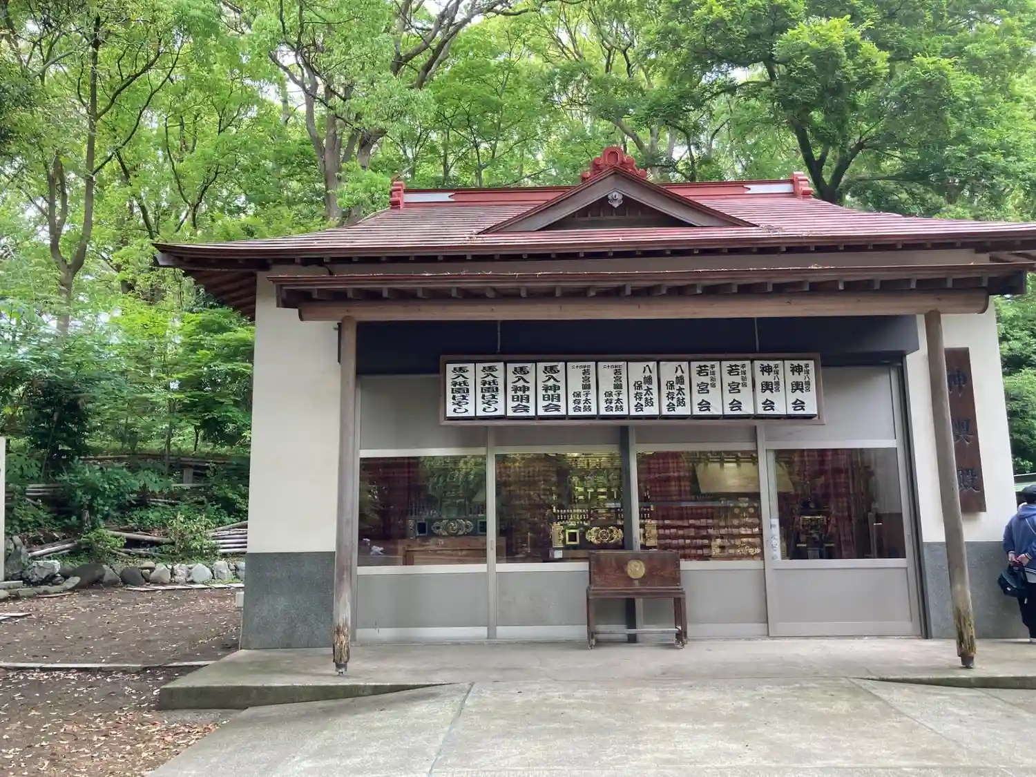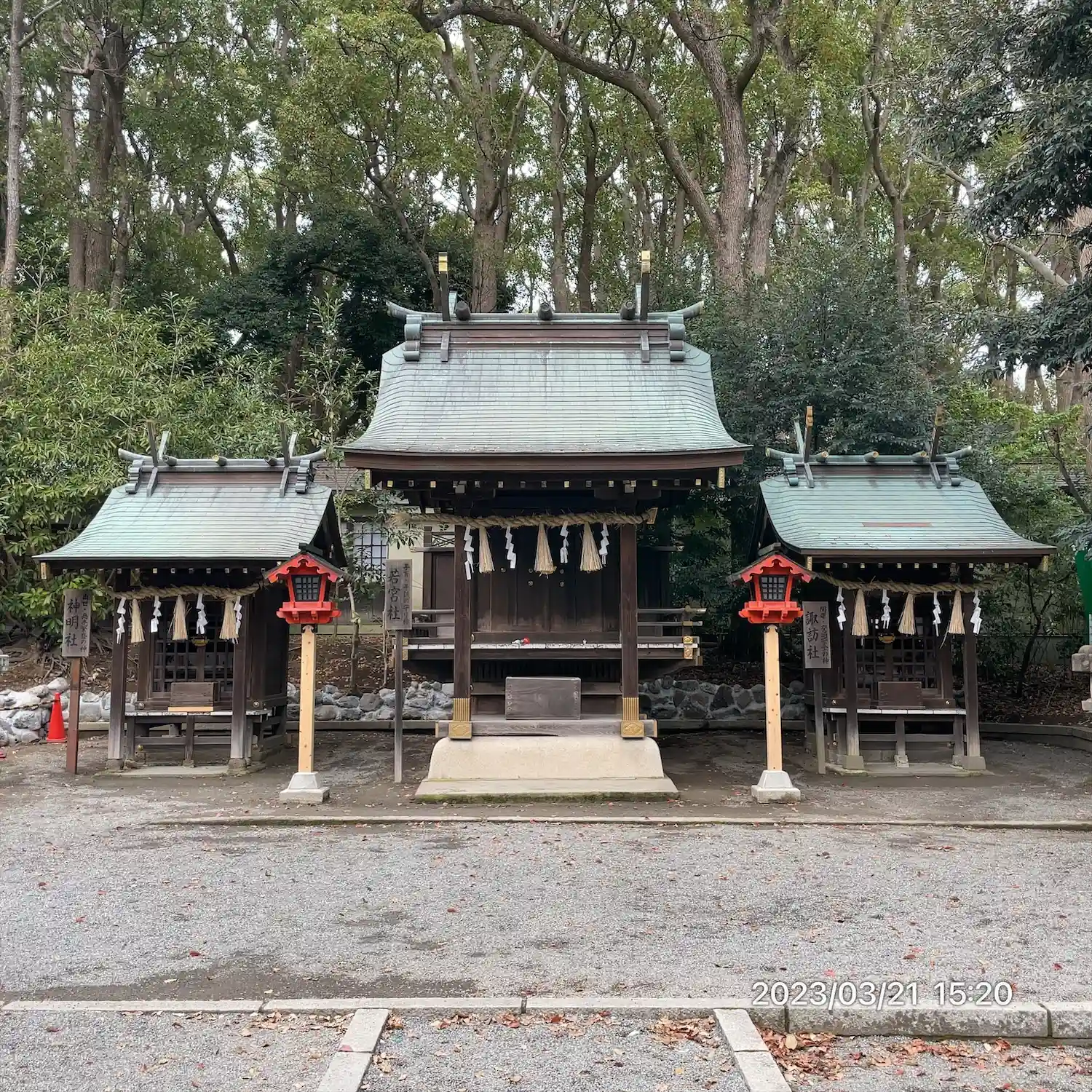 諏訪社の前から振り返ると、さっき通った参道脇に<神厩舎>がある。