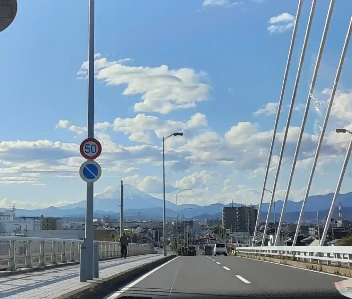 国道1号線の歩道橋上より。