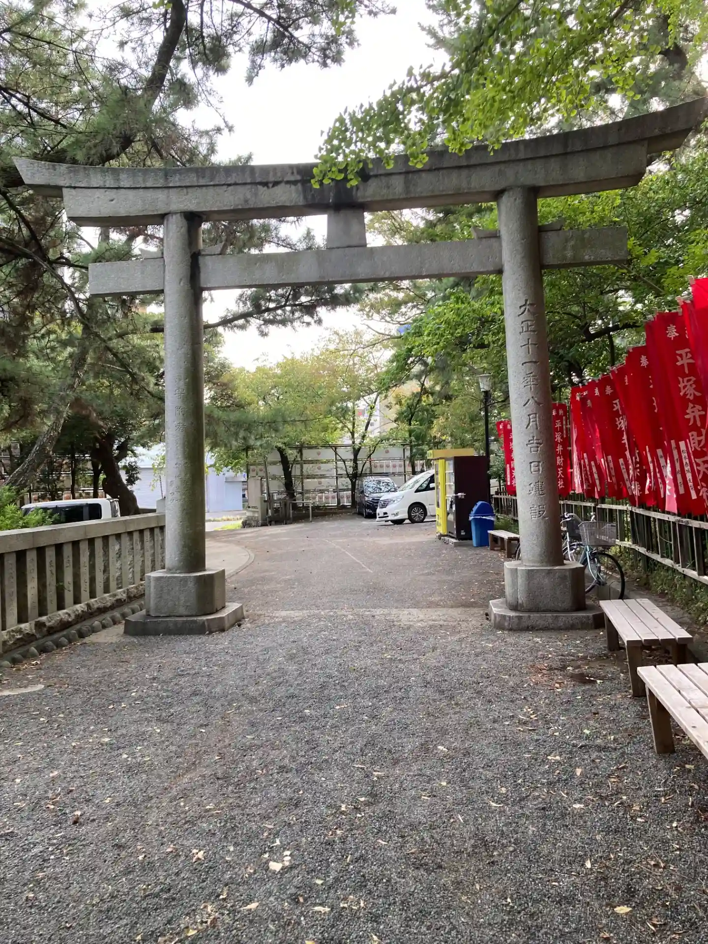平塚駅から徒歩10分ほど。道路沿いに面した大きな鳥居で目を引きます。