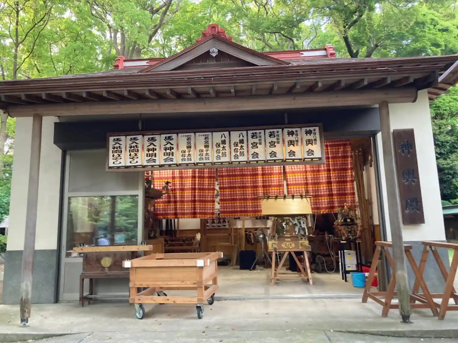 人形テントの裏には<神輿殿>。