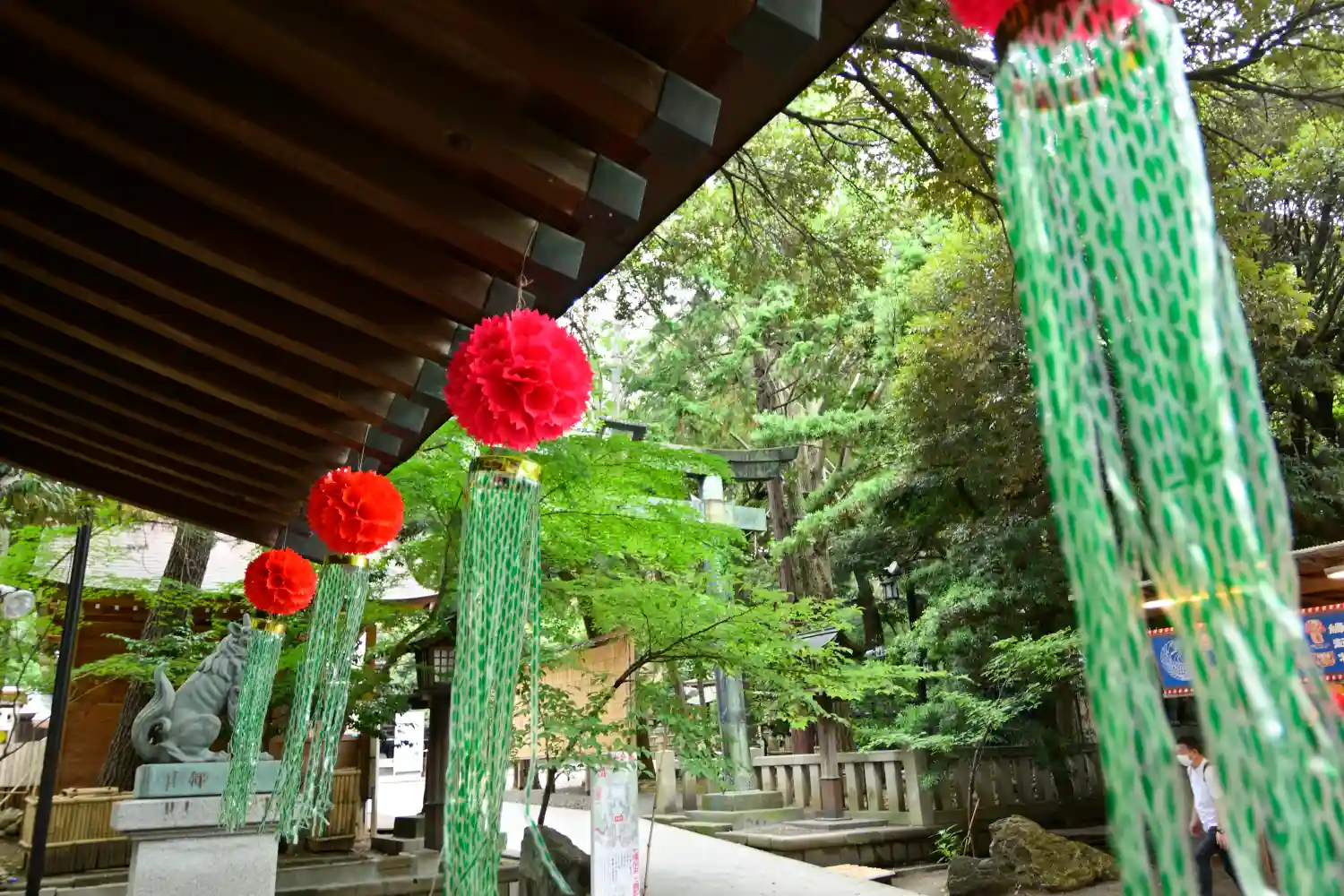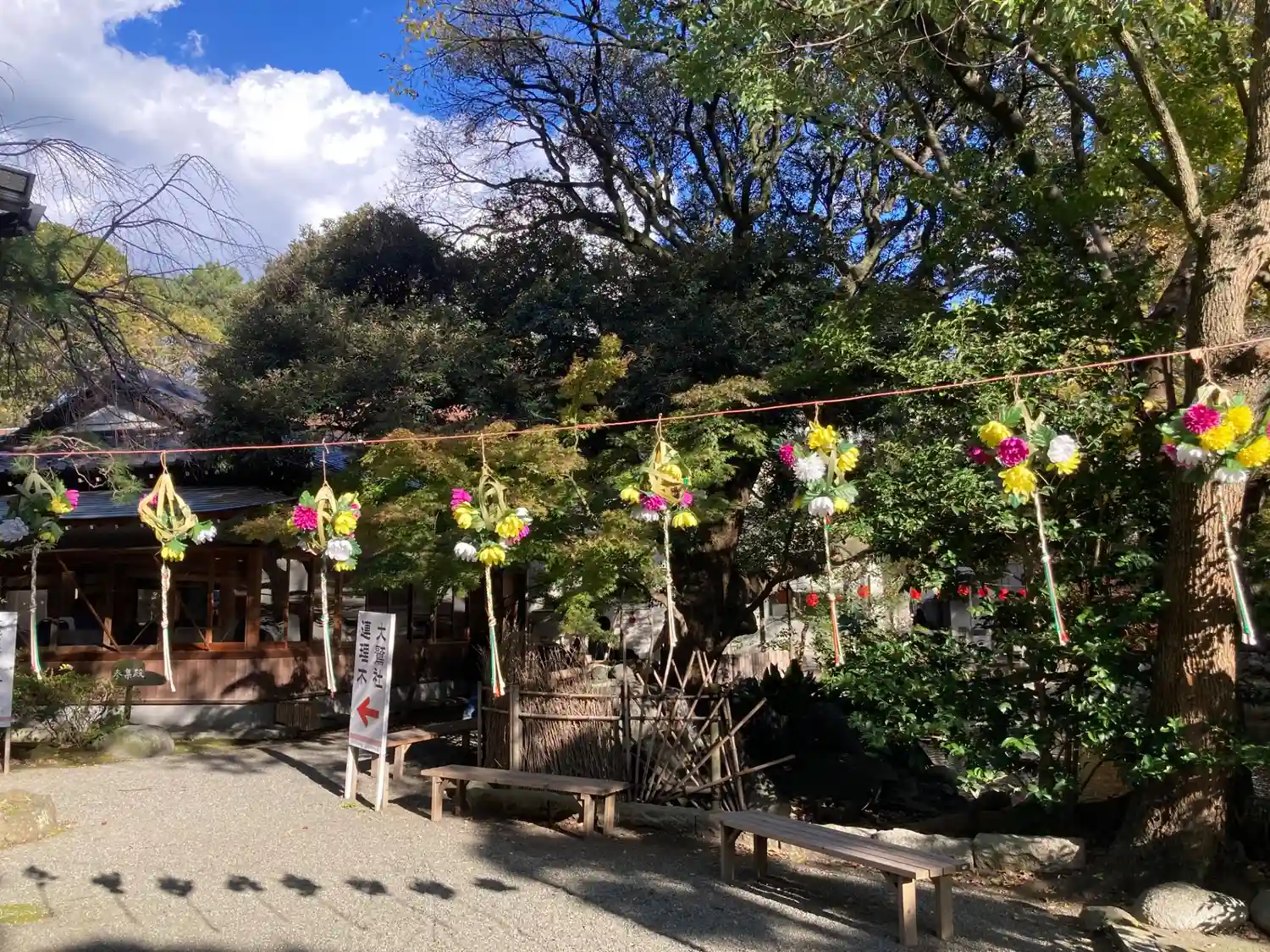 参道に花ぼんぼりが。