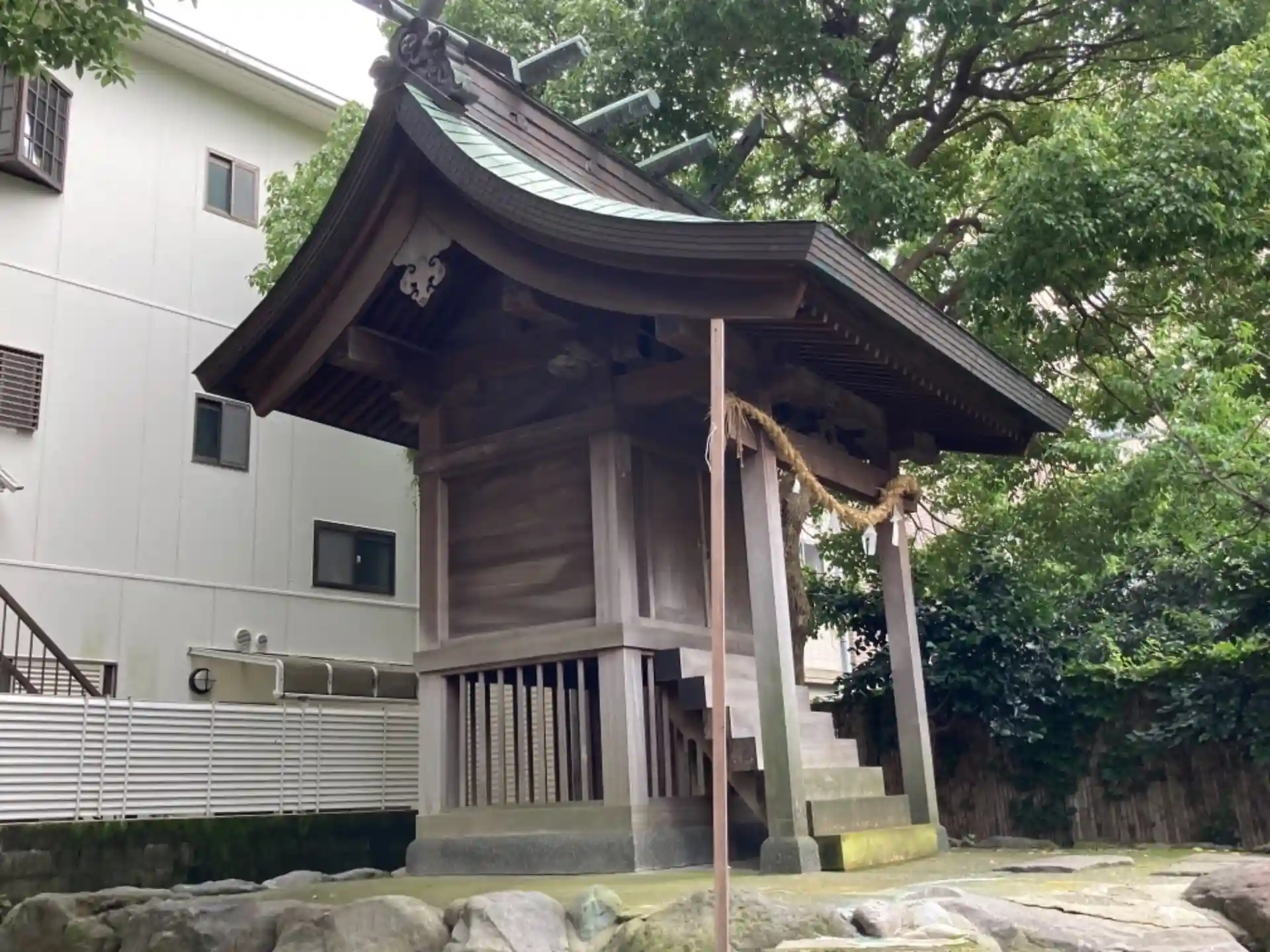 21.07.06。先の八王子神社より徒歩10分。平塚駅近く、明石町の繁華街の裏手に鎮座。